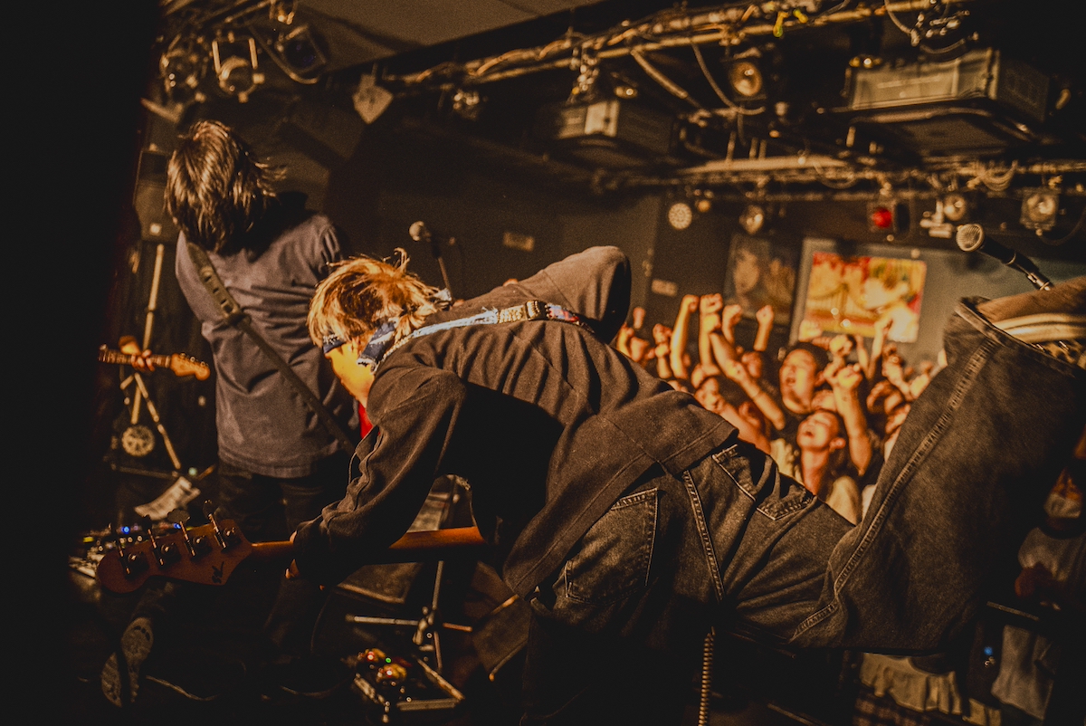 ここまで2本ですでにいろいろ起きているらしいツアーを振り返りつつ、改めてINKYMAPに感謝を伝える杉野の息はすっかり上がっている。だがもちろんライブはまだまだ止まらない。いや、むしろそこからがすごかった。「しょうもない世の中にしょんべんかけるくらいのロックンロールやりにきました」と「未来は俺らの手の中」をぶっ放し、アルバムからの「キ43」では暴れ回る近藤のギターがズタズタに景色を切り裂き、その裂け目から杉野のがなり声が迸る。「死ぬほど鬱陶しいヤツ頭に浮かべてみ? 俺が音楽で殺してやるよ!」と「罪ト罰」へ。THEE MICHELLE GUN ELEPHANTへのリスペクトを込めた「シスコ!」の叫びがフロアから起こり、ライブはクライマックスへと突入していくのだった。