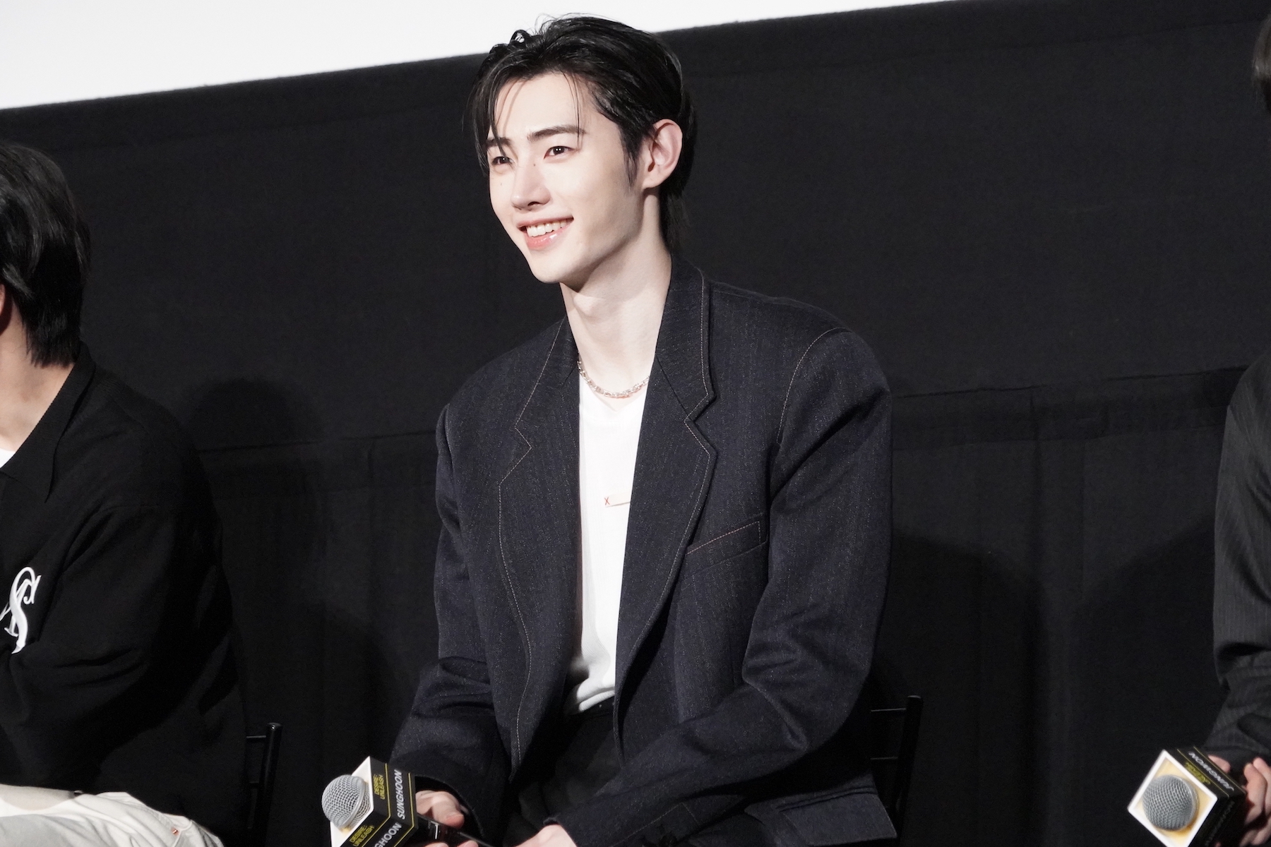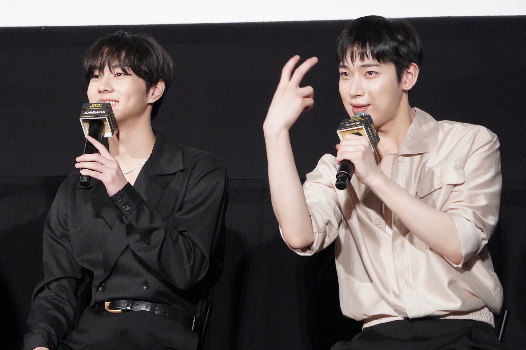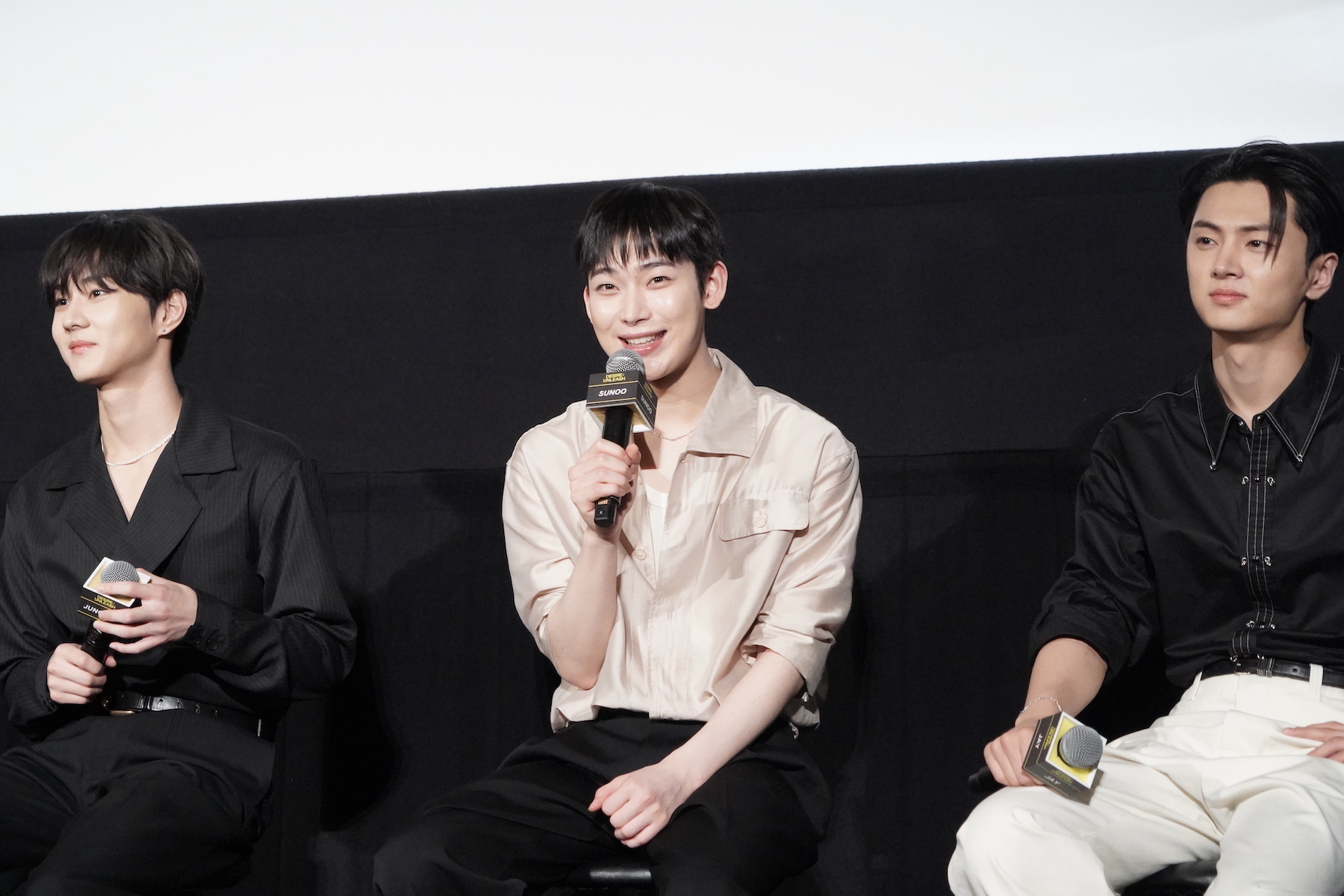 また、セリフの有無で演技の難易度が変わるかという質問に対しては、SUNOOが回答。彼は「当然、セリフがあるほうが難しいと思います」「セリフがあると、そのセリフも声で感情表現をしなければならないし、より深い演技を求められるので、表情とセリフがセットのほうが難しい」と持論を明かす。SUNOOはメンバーから求められ、今回のコンセプトムービー内でも使われている「早くきたね?」(「빨리 왔네?」)というセリフを実演。SUNOOが恋人に語りかけるようにセリフを発すると、歓声が聞こえてきた。