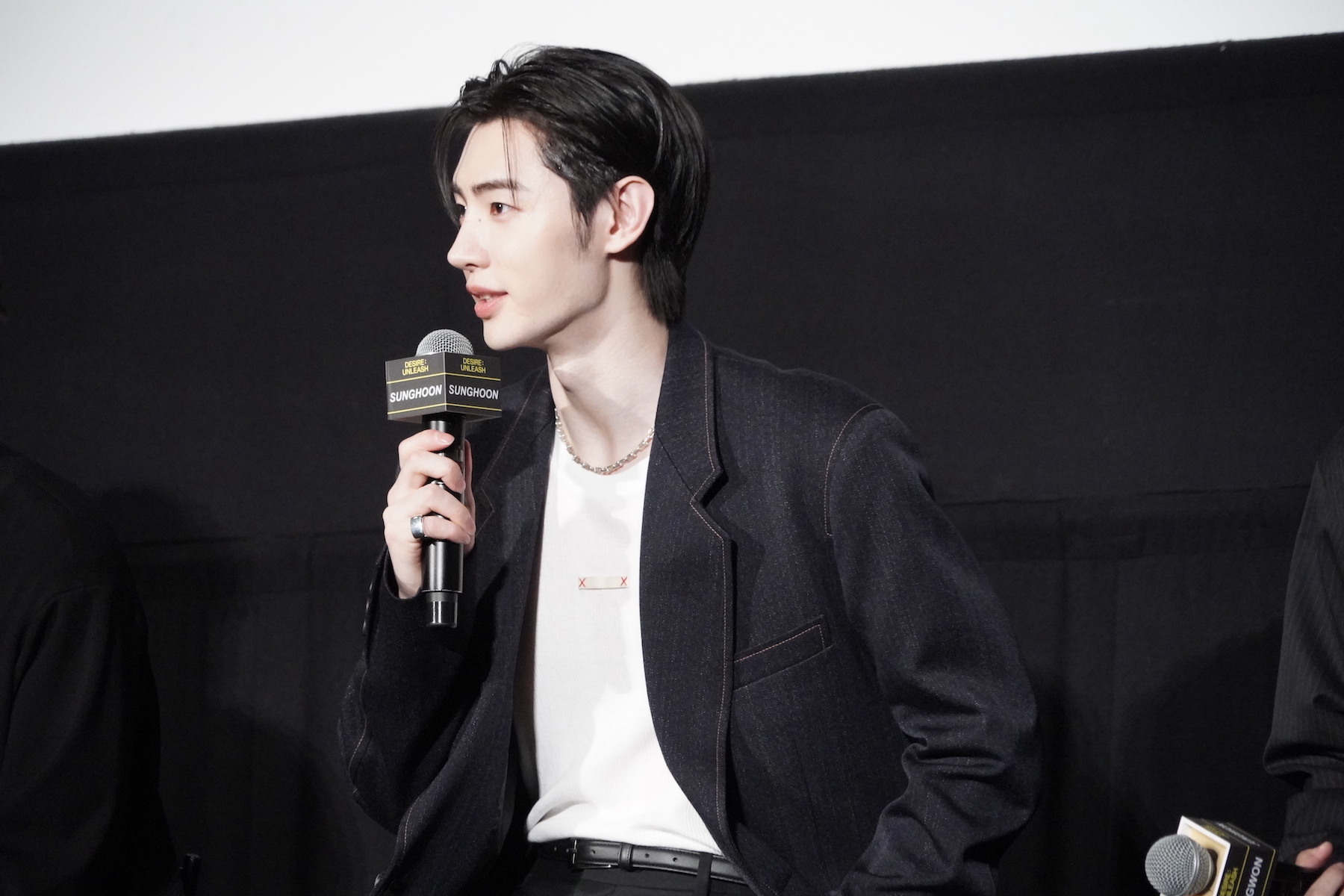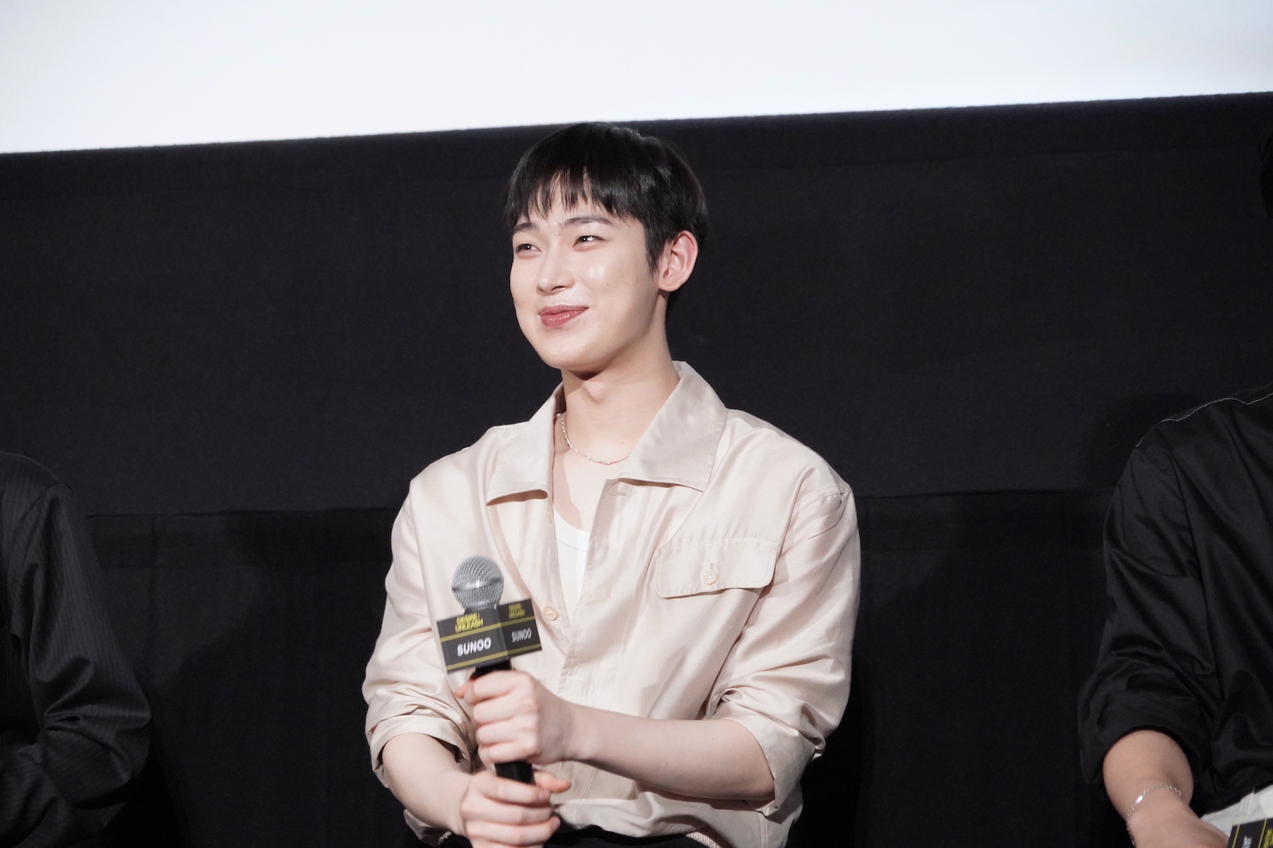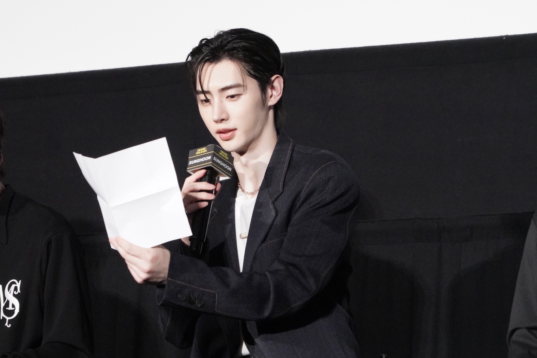 また、セリフの有無で演技の難易度が変わるかという質問に対しては、SUNOOが回答。彼は「当然、セリフがあるほうが難しいと思います」「セリフがあると、そのセリフも声で感情表現をしなければならないし、より深い演技を求められるので、表情とセリフがセットのほうが難しい」と持論を明かす。SUNOOはメンバーから求められ、今回のコンセプトムービー内でも使われている「早くきたね?」(「빨리 왔네?」)というセリフを実演。SUNOOが恋人に語りかけるようにセリフを発すると、歓声が聞こえてきた。