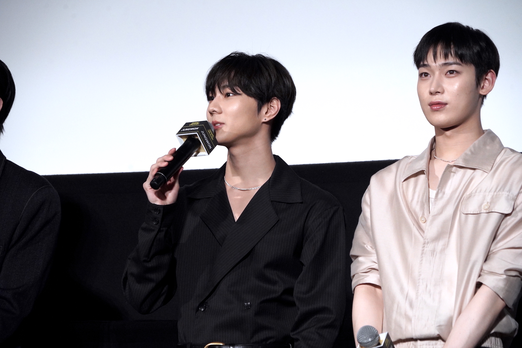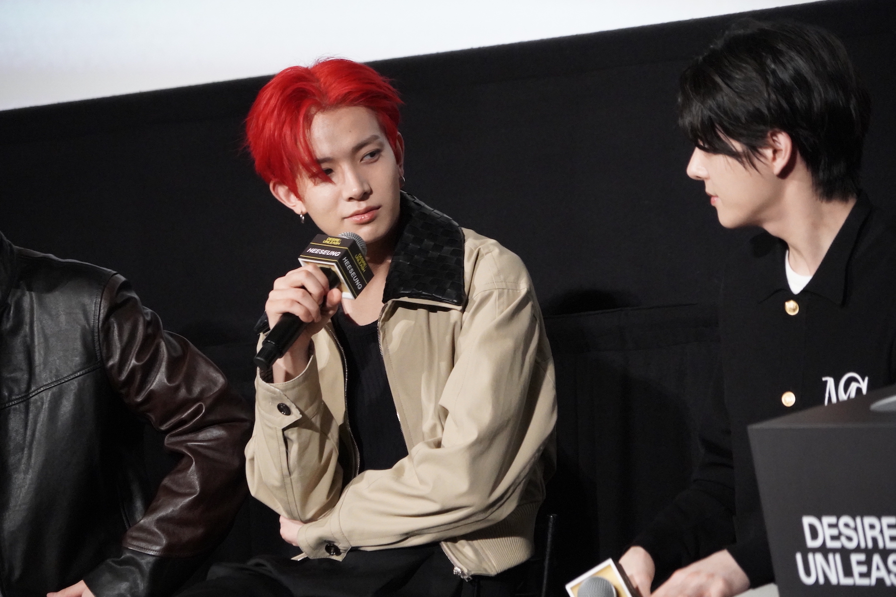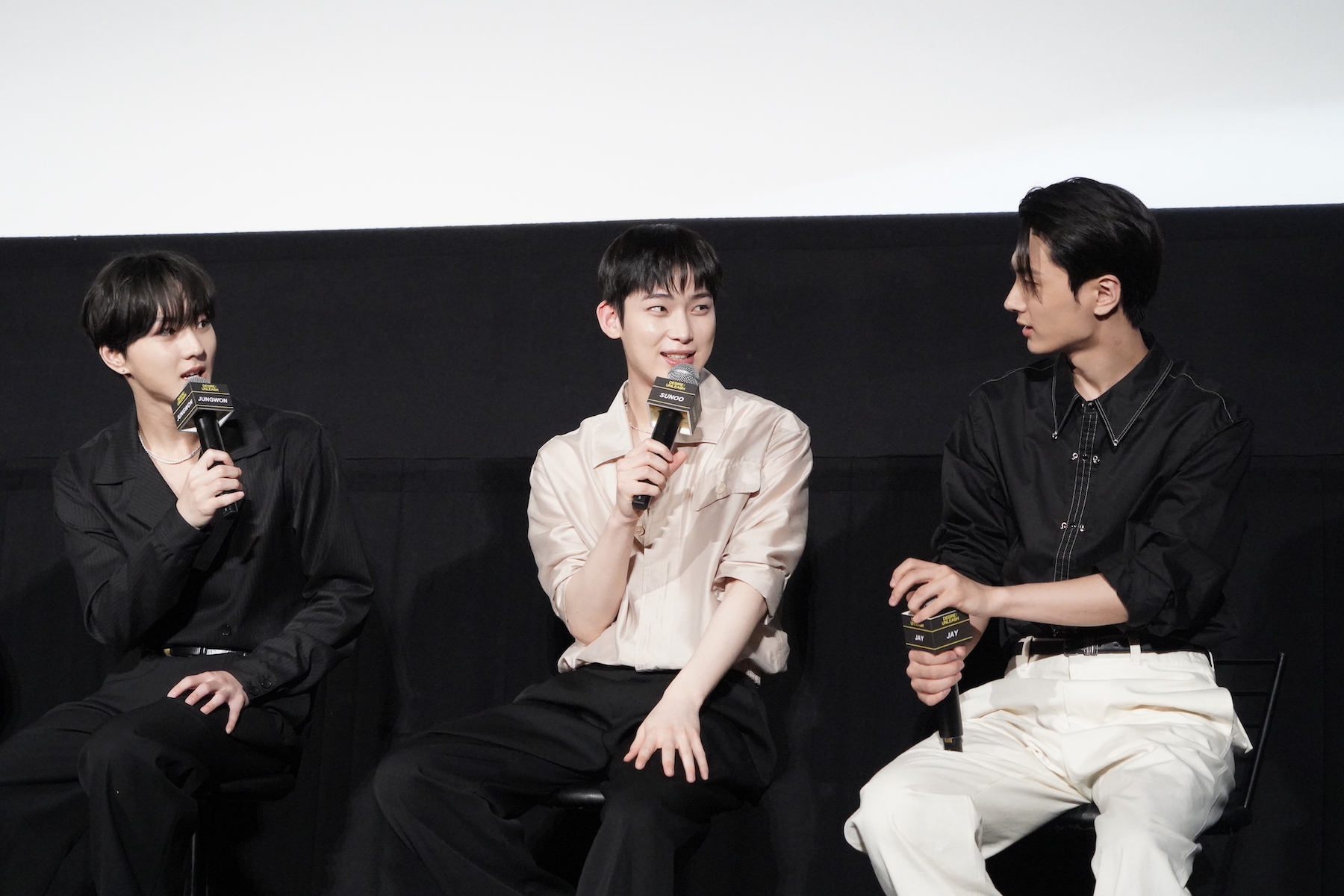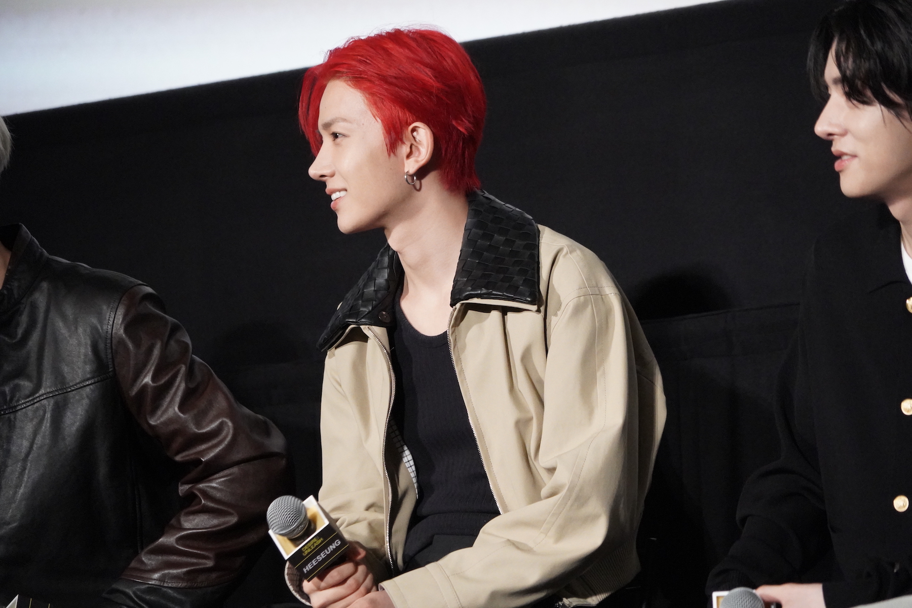 コンセプトシネマの演技指導で特に印象に残っているアドバイスについては、HEESEUNGがマイクを握った。彼は「今回僕はあまりセリフが多くなく、表情演技がたくさんありました」「ワインを飲むシーンがありましたが、グラスを傾けて飲む、その角度をとても細やかに指導いただきました」と、撮影秘話を語る。すると、JUNGWONなどから「(HEESEUNGが撮影時に飲んだのは)ジュースでしたよね」「甘いやつ!」とツッコミが入り、観客の笑いを誘った。
