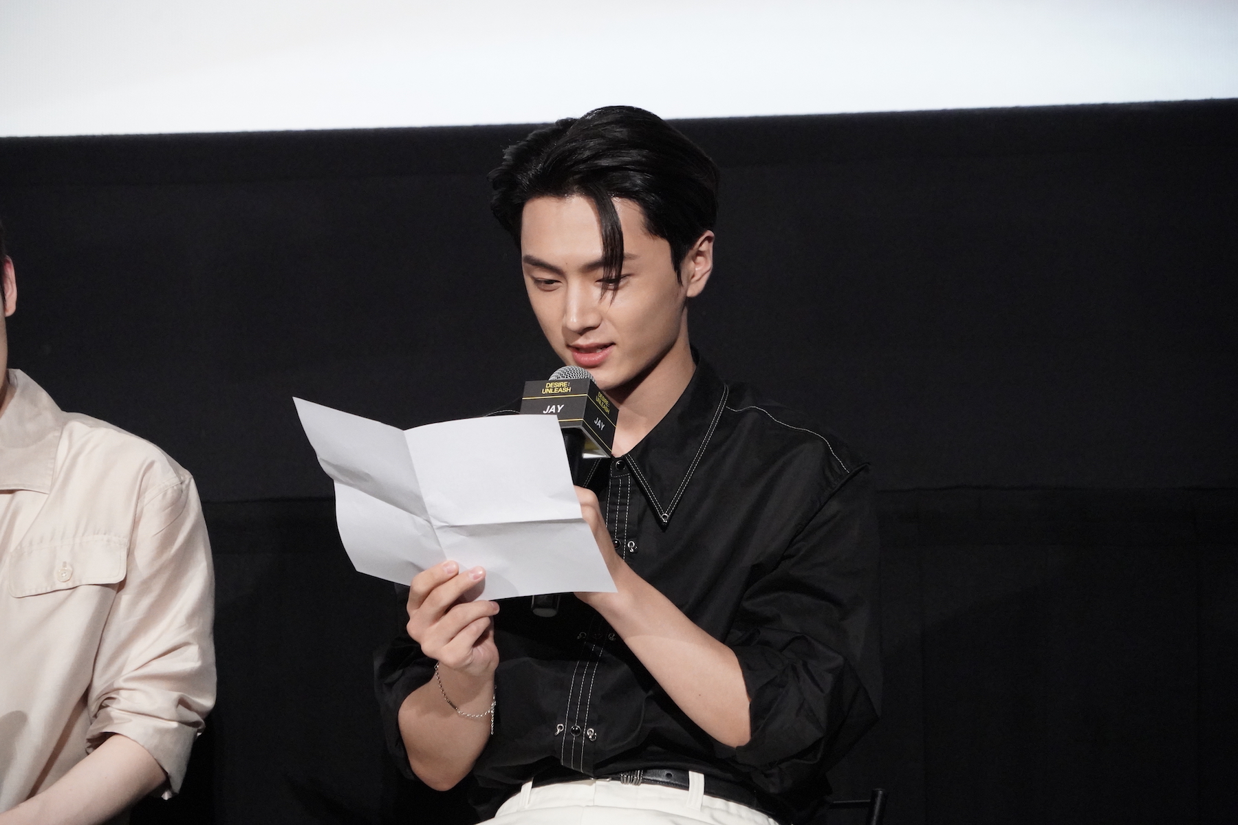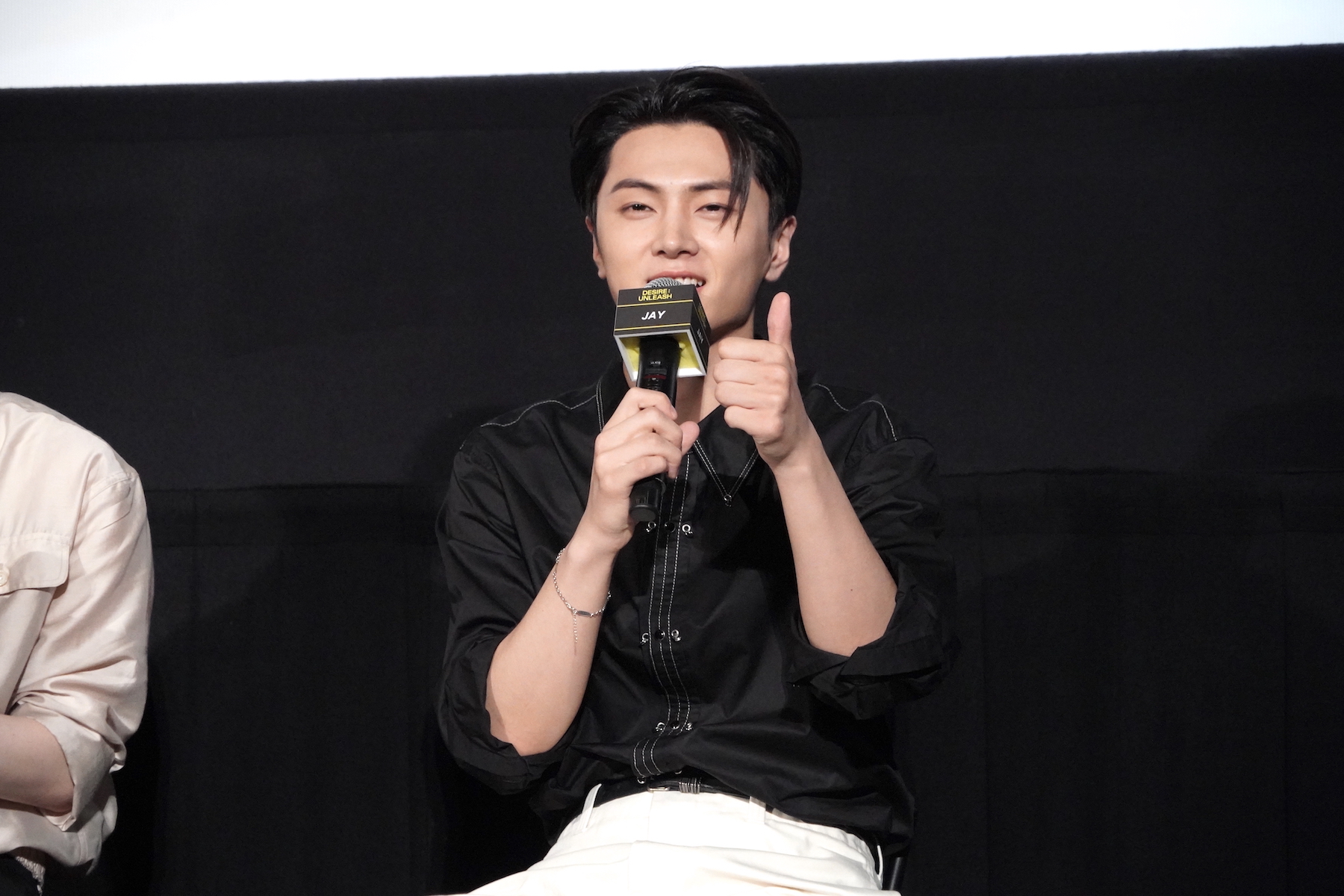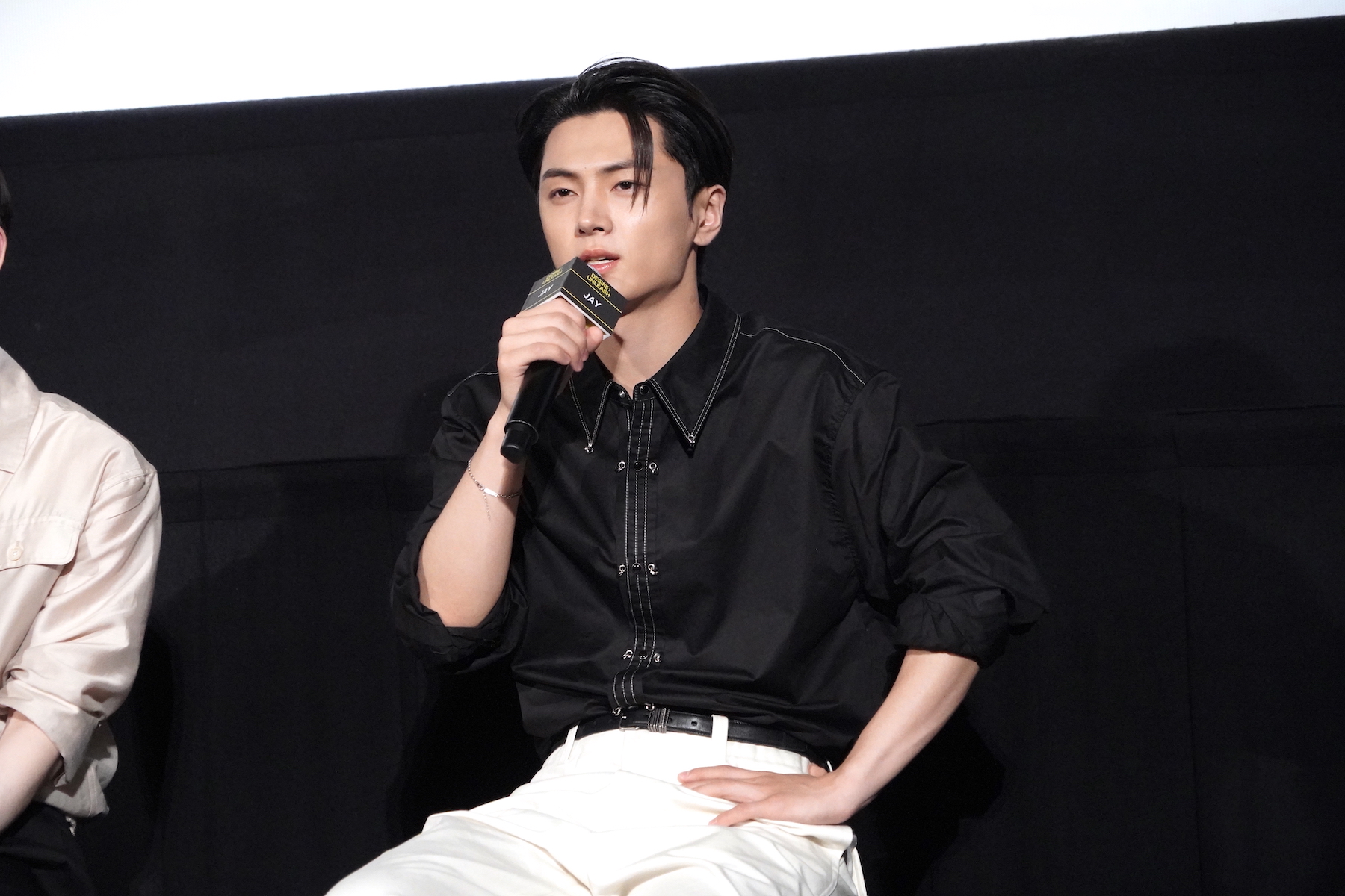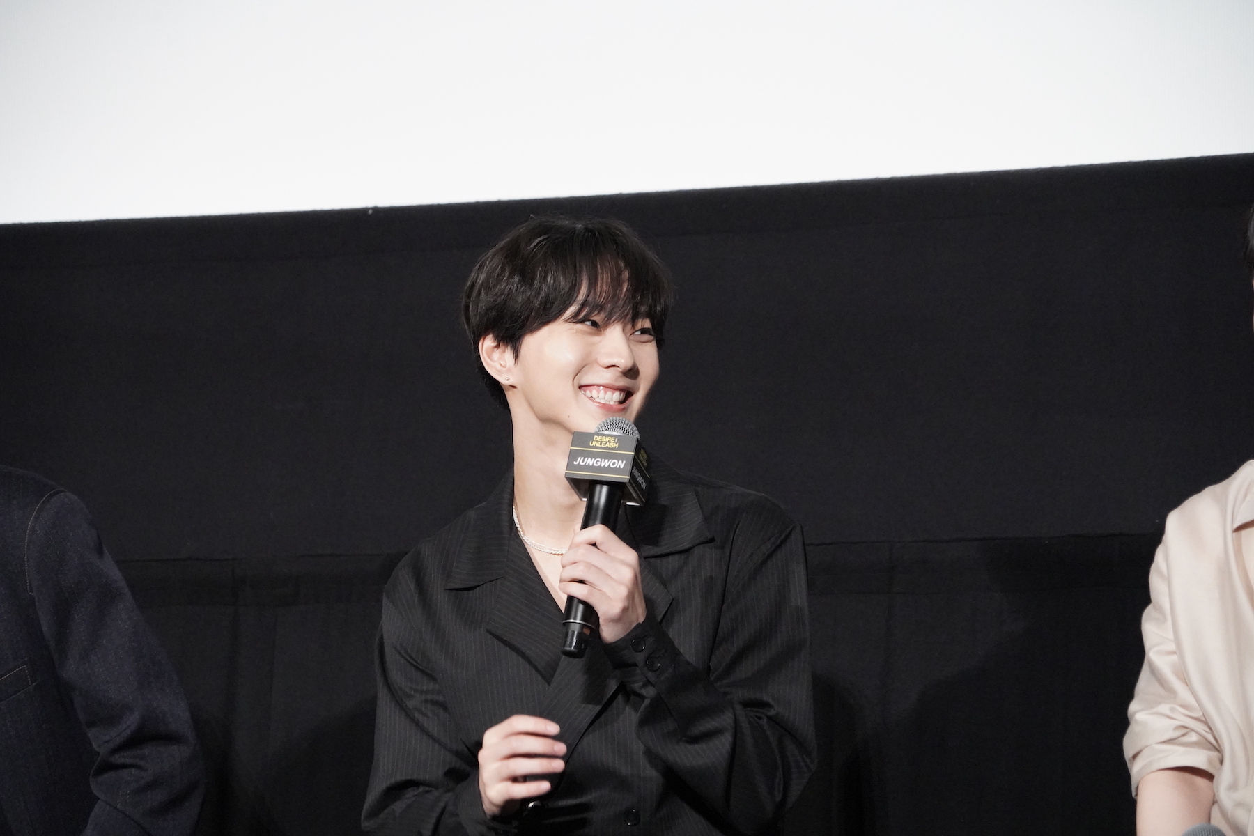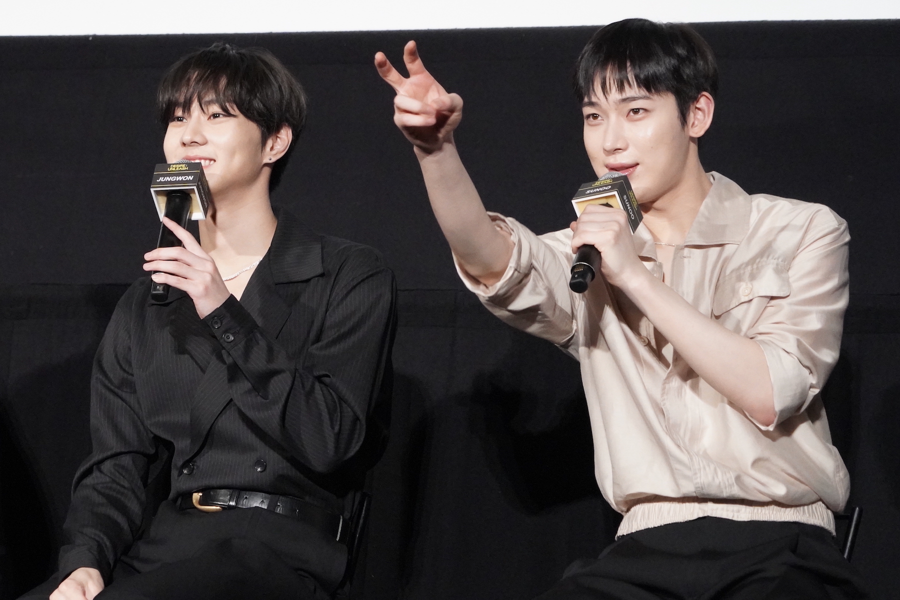 コンセプトシネマの演技指導で特に印象に残っているアドバイスについては、HEESEUNGがマイクを握った。彼は「今回僕はあまりセリフが多くなく、表情演技がたくさんありました」「ワインを飲むシーンがありましたが、グラスを傾けて飲む、その角度をとても細やかに指導いただきました」と、撮影秘話を語る。すると、JUNGWONなどから「(HEESEUNGが撮影時に飲んだのは)ジュースでしたよね」「甘いやつ!」とツッコミが入り、観客の笑いを誘った。
