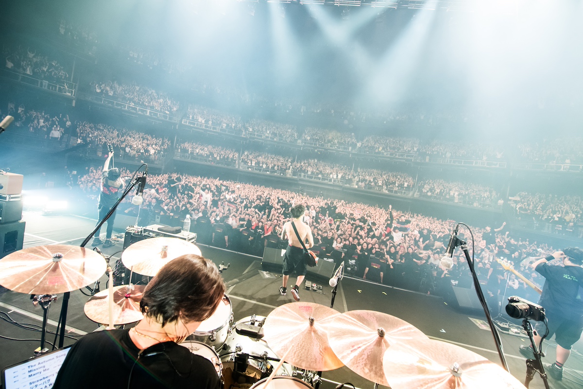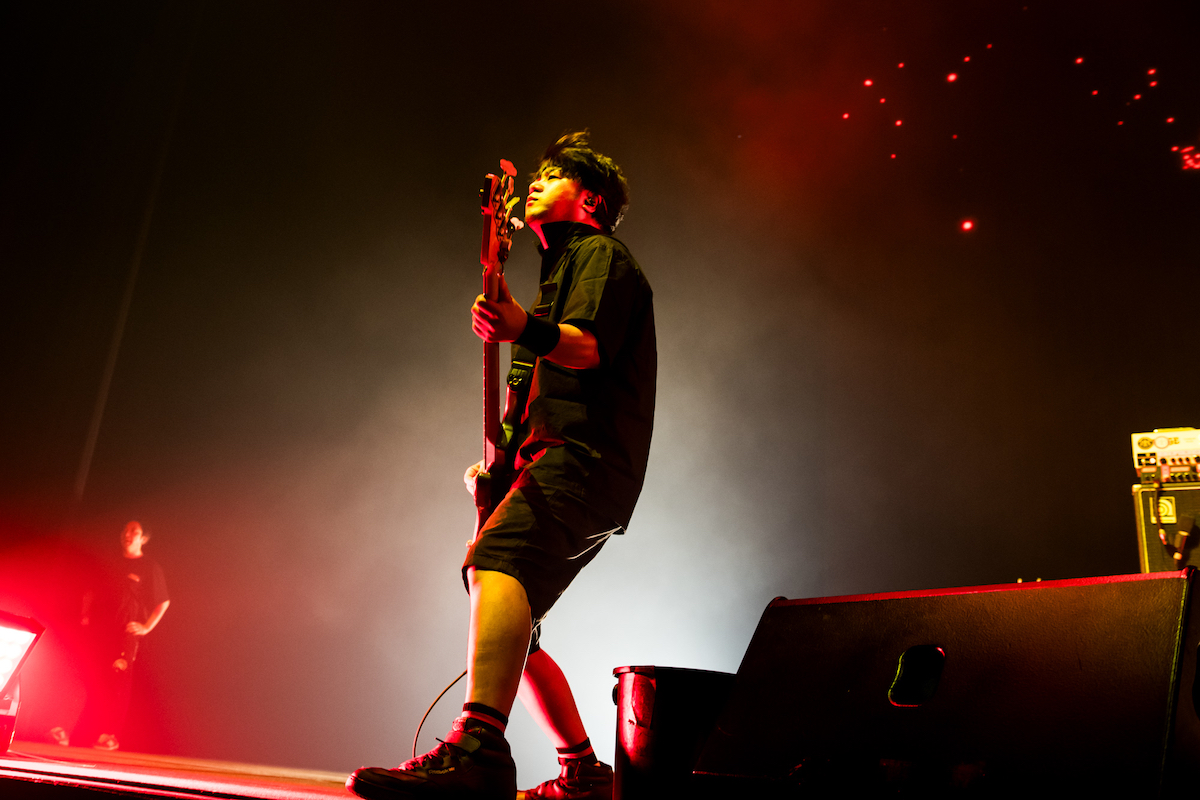 With FEEDER having set the stage on fire, ELLEGARDEN made their return. Hosomi roared, “Let’s go, Tokyo!” as they kicked off their set with “Supernova.” The crowd instantly erupted, singing at the top of their lungs, moshing, and surfing in response to the band’s fiery performance. “Salamander” followed without pause, further intensifying the floor. Songs from their 2022 comeback album “The End of Yesterday,” such as “Cheesecake Factory” and “Mountain Top,” proved themselves as fan-favorite live staples, having matured over the past two years to become indispensable anthems.