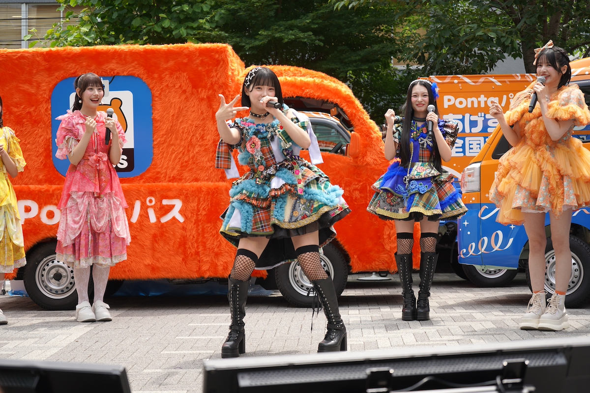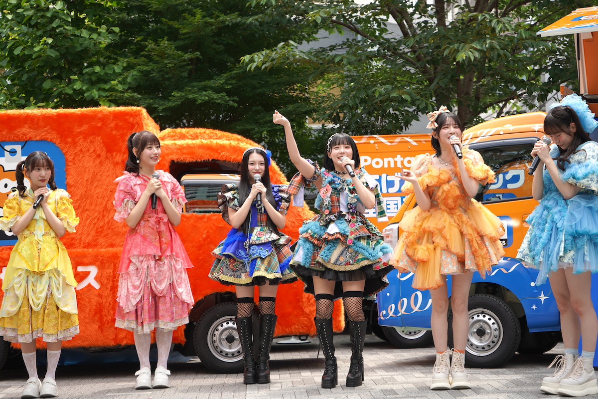 8人で「ポンポンあげすぎトラック」が全国各地に出発する姿を見送った後、白石は「KAWAII LAB.の衣装を着たポンタくんとか、限定コラボなどができたら嬉しいです」と笑顔でコメント。