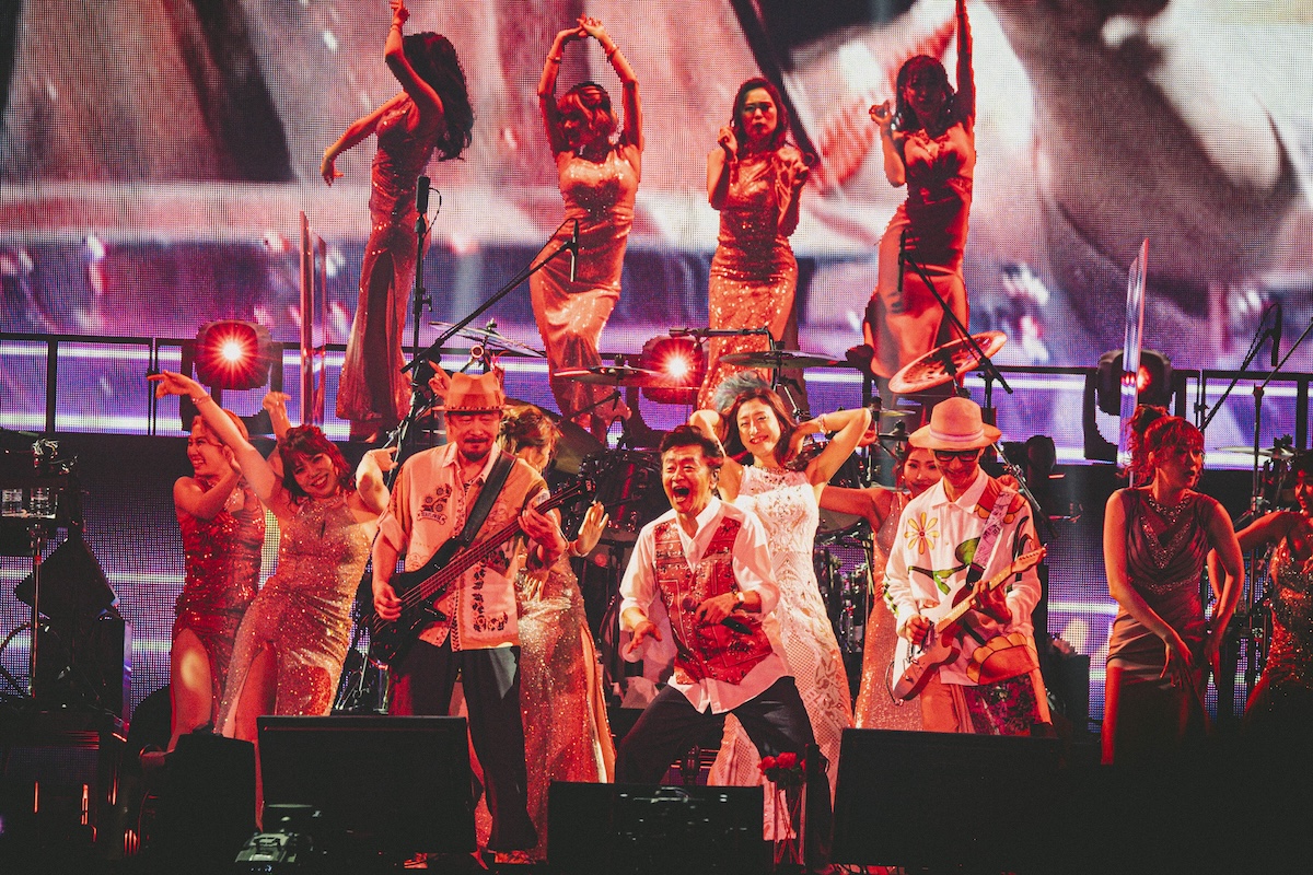 AIボイスが「ミラーボール、回転」と告げ、ドームのあちこちに仕込まれたミラーボールが一斉に光を放ち始め、あのギターが響き、そこに他の楽器群の音が加わってイントロになり、ゴージャスな夜の衣装を纏ったEBATOダンシングチームが踊り始めた時のカタルシス、ちょっともう、筆舌に尽くしがたいものがあった。まだ桑田が歌い始めていないのに。そして、そのカタルシスは、桑田がAメロを歌い始める→サビになる→2コーラス目に突入する──と、曲が進んでいくごとに、どんどん高まっていった。昂っていった、と言った方がいいかもしれない。