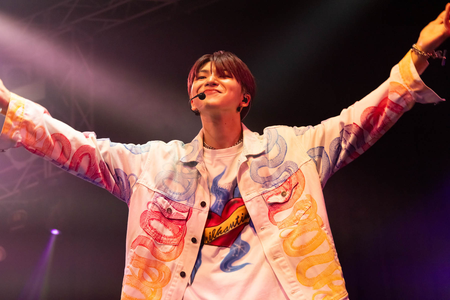 続く「わたしの一番かわいいところ」(FRUITS ZIPPER)と「Bling-Bang-Bang-Born」(Creepy Nuts)のカバーも、“意外性”という点ではベストなセレクトだと言えよう。猫耳のカチューシャをつけてかわいらしいポーズを決めた前者(KOUKI/DIEN/ISAAC)と、難易度の高いトーキングラップを難なくこなした後者(SAERON/RIKU)。アイドルとアーティストの両面を見せたこのコーナーは、グループのエンターテインメント性の高さを伝えるものだったと思う。