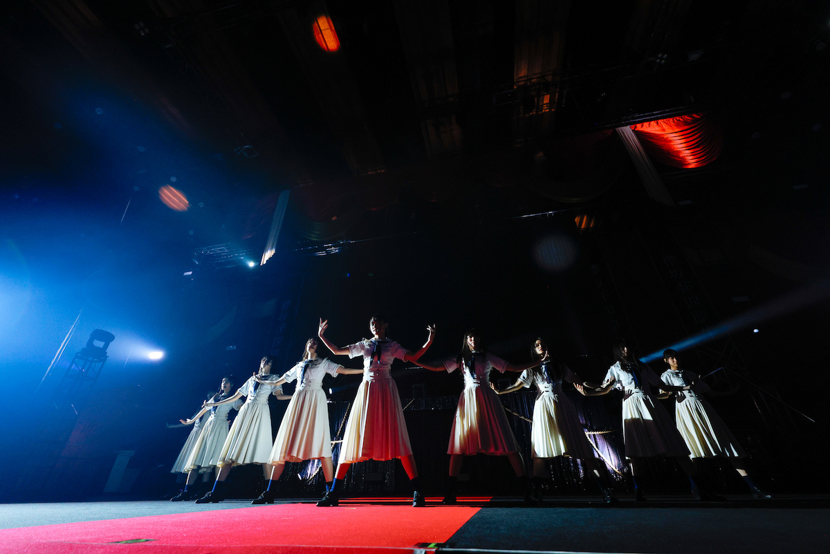 「Overture」に続いて、ステージにひとりずつ登場した四期生がダイナミックなダンスを見せていく中、ライブは「自業自得」にて幕開け。センターの目黒を中心に、早くも汗だくになりながら大きな声で歌い、難易度の高いダンスを全うしてみせる。そこには合宿期間に歌やダンスで壁にぶつかり続けた、頼りなさげな9名の姿はなかった。