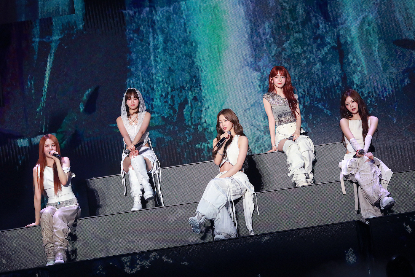 一人ひとりのコメントを終えて、「こんなに重い雰囲気で終わりたくない!」(HUH YUNJIN)、「今日はいつもとは違う終わり方をしましょう」(SAKURA)と話すメンバーは、アンコール2曲目へ。この日の前日に先行リリースされた「DIFFERENT」は、この日が2回目の披露となった。懐かしいディスコファンクのスウィング感を残しつつ、現代風にアップデートされたメロディラインとビートが、目も耳も心も惹きつけていく。