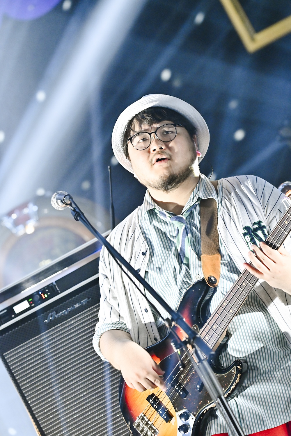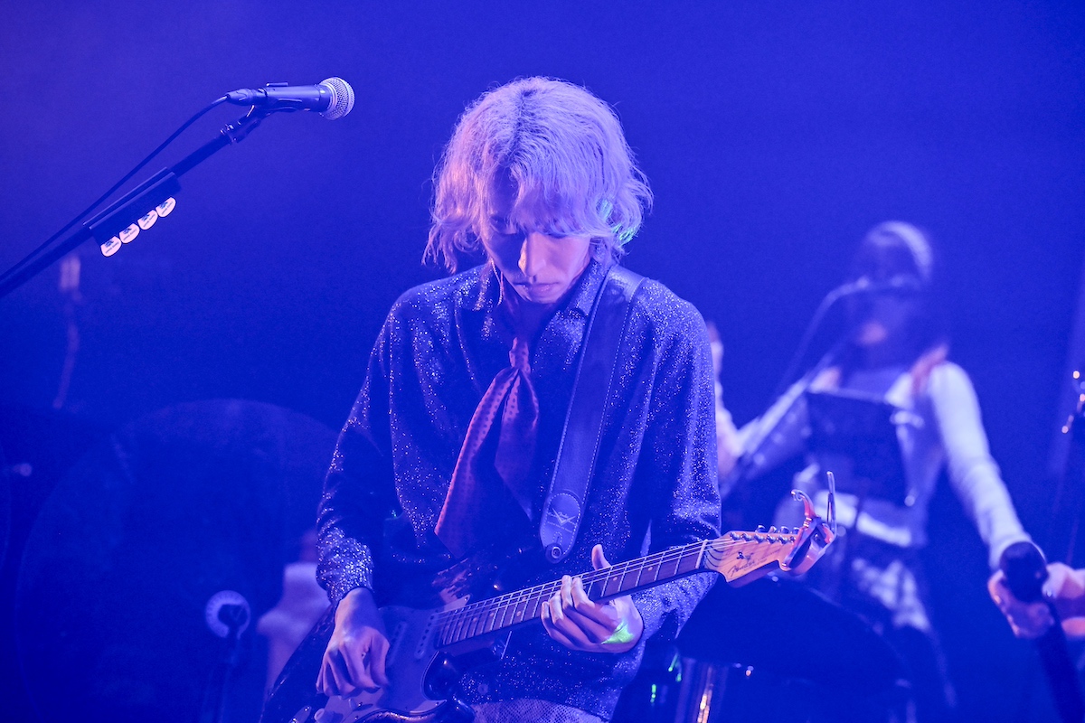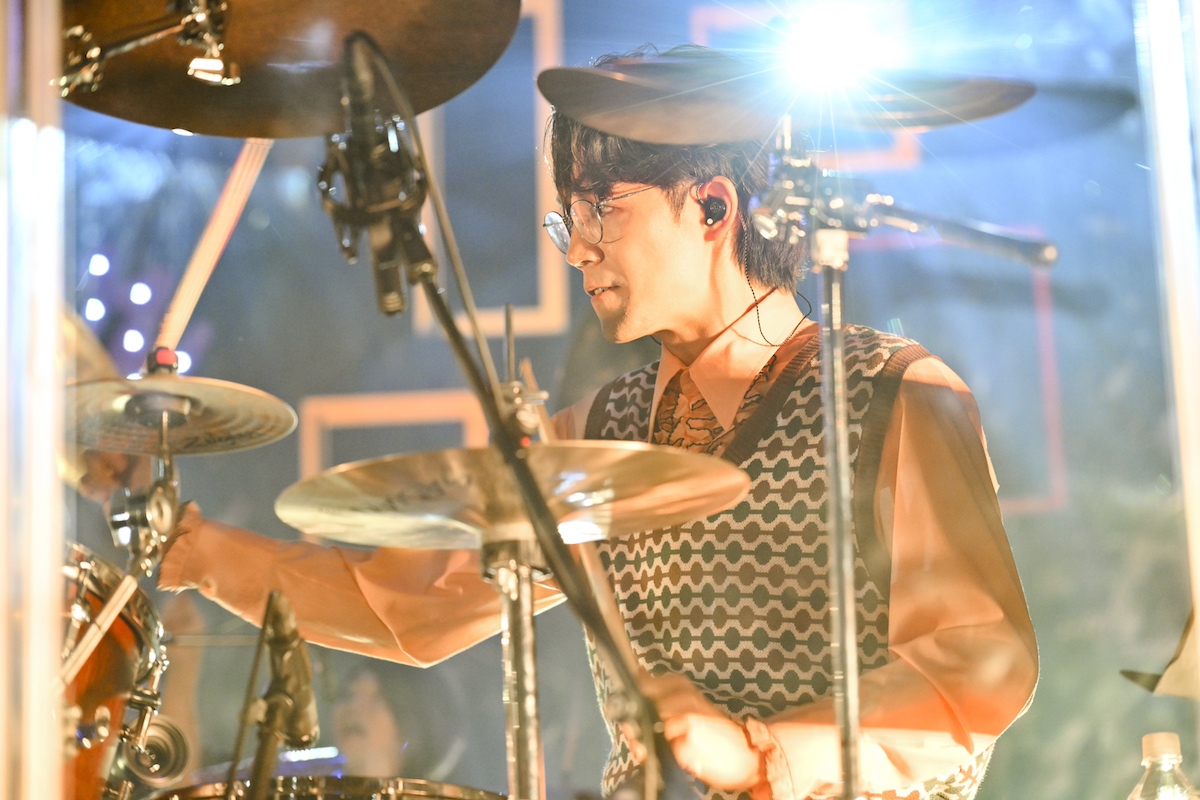 「真夜中の秘密のパーティがコンセプト」だと浪岡がMCで語ったとおり、グルーヴィなナンバーでグイグイ観客を引っ張っていく前半。ラップパートで浪岡が流暢な英語を聴かせたかと思えば、大島は高音でヘッドボイスをスパーンと響かせる。洒脱なミディアムチューンでリズムに合わせて小粋なステップを踏んでいた大島は、グランドピアノを演奏しているCateen(Pf)に歩み寄り、その椅子の端に腰かけて歌う。矢野慎太郎(Gt)はステージ前に出てきてギターソロを披露。非常にタッチが柔らかく、音色も繊細。オーセンティックなフレーズにきらめきを添える。ステージ右側、前方に設置されたドラムセット。タイトなリズムを刻む平井辰典(Dr)は、スネアやタムの叩く位置、シンバルを止める左手の位置もすべて同じながら、余韻(響き方)を叩き方で調整しているのがわかる。浪岡に至っては、ギターを弾き、スタンドマイクやハンドマイクを自在に操りながらボーカリスト&パフォーマーとしての実力をいかんなく発揮。ローボイスの安定感や声圧の一定感など、ライブでなければわからない新たな発見もあった。