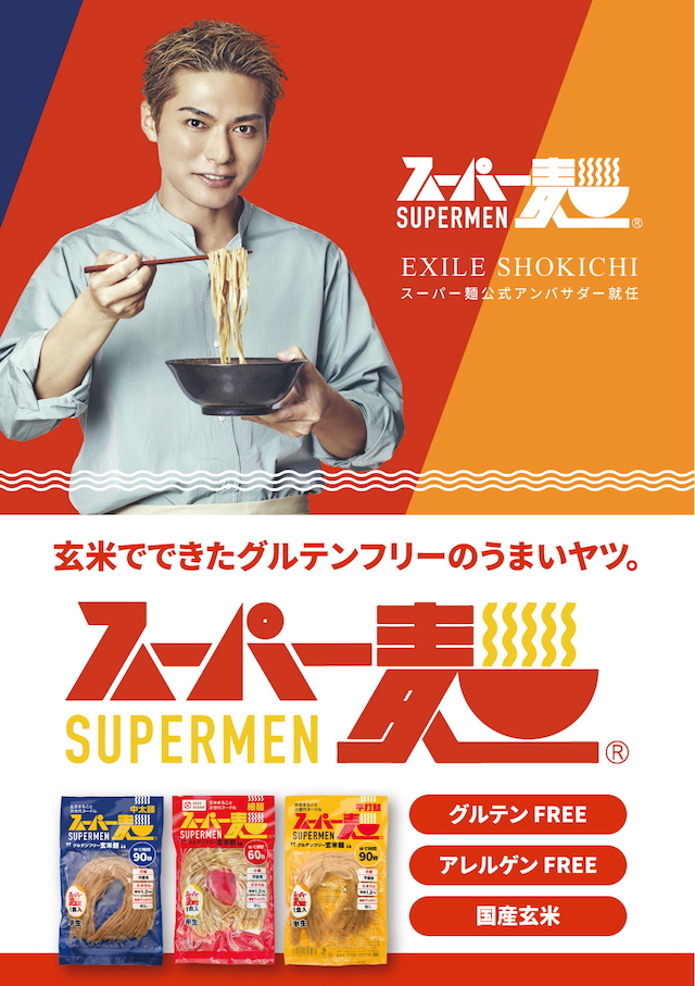 EXILE SHOKICHI(EXILE/EXILE THE SECOND)が、グルテンフリーヌードル『スーパー麺』の公式アンバサダーに就任。渋谷にて開催されたアンバサダー発表記者会見に出席した。