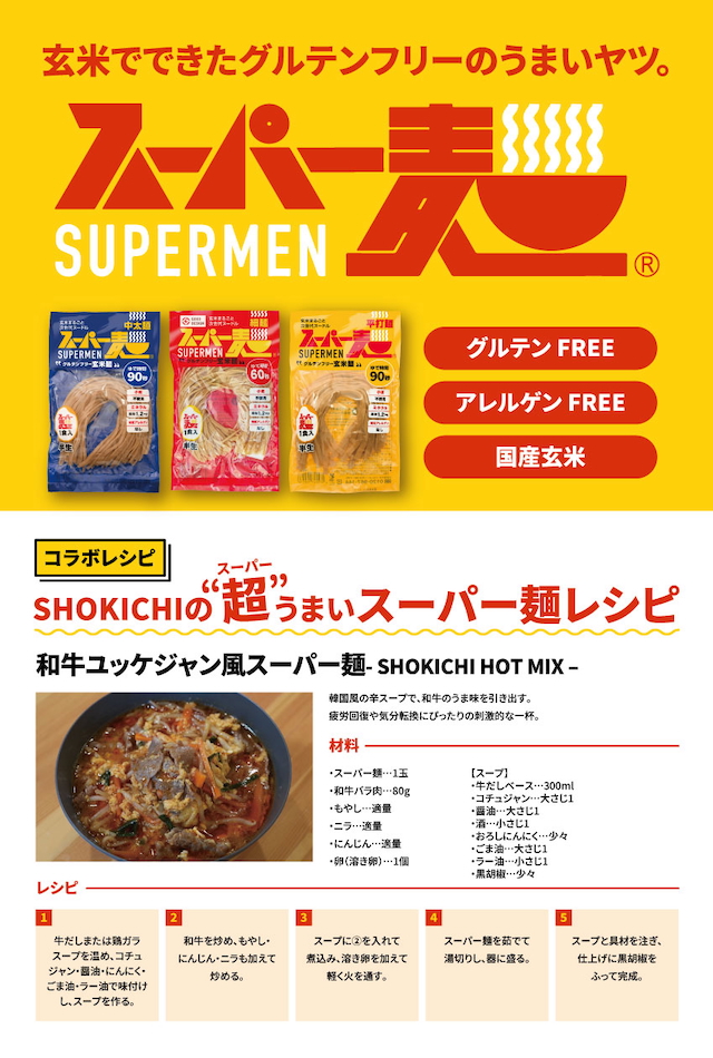 ・EXILE SHOKICHIの『スーパー麺』公式アンバサダー就任を記念し、公式オンラインストアにて商品を購入すると、EXILE SHOKICHI考案レシピが載っているポストカードを同封。