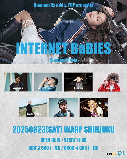 また、7月27日に代官山UNIT、8月23日にWARP SHINJUKUにて開催される初自主企画ライブ『INTERNET BaBIES』の出演者が発表された。代官山公演には、NEK!、Wisteriaのガールズバンド2組が出演。新宿公演には、KIKUMARU、Rude-α、Hayato Yoshida、LOM、yura、DJ TY-KOH、DJ §arinaといったヒップホップアーティストとDJが出演する。さらに、両公演で1曲ずつ新曲の初披露も予定。チケットは両日とも販売中だ。