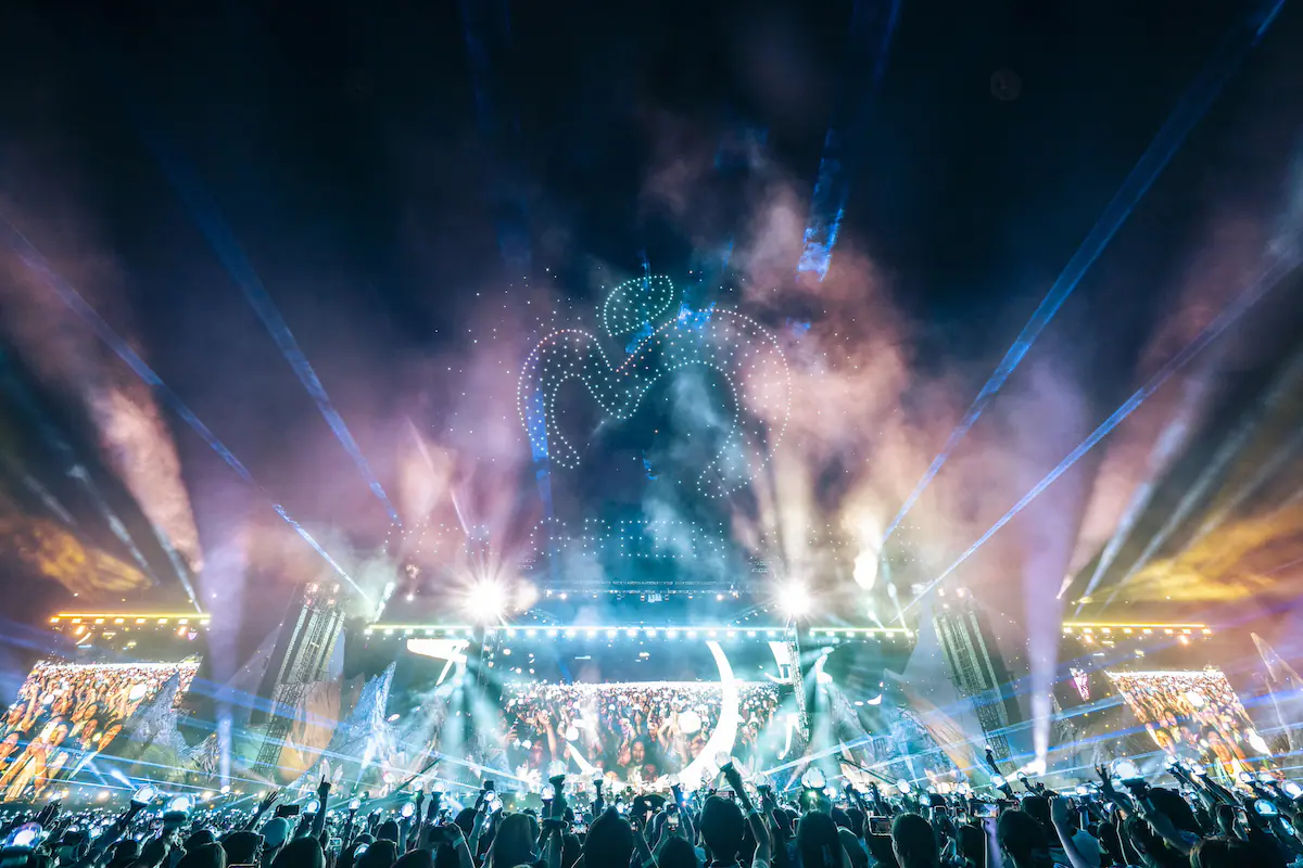ラストを飾ったのはデビュー曲「StaRt」だった。歌い出しの歌詞は〈やっとこさ 幕開けだ〉。小学生の頃から曲作りを始め、音楽の道に進むと疑わなかった大森が、メジャーでやっていくプロのバンドとして結成したバンド Mrs. GREEN APPLE。結成から2年でのメジャーデビューは傍から見たら早いかもしれないが、大森からしたら〈やっとこさ〉なのである。メジャーという大海原への航海を前にした昂る気持ち、皮肉や絶望を忍ばせながらも、ミセスの根幹にある楽しみながら幸せと愛に気づこうという想いをカラフルでハイパーなサウンドに乗せた「StaRt」。始まりの歌であることからサビに聴き慣れた音階がそのまま取り入れられるなど、今聴いても画期的な楽曲だ。ステージ頭上には無数のドローンが浮かび、ミセスのバンドロゴを描いていく。最後の歌詞は〈独りじゃないと否定出来るように/明日も唄うんだ〉。大森は音楽を通してずっと人と繋がろうとしてきた。今、目の前にはミセスを愛する5万人がいる。大森は「愛してるよ!」と言い放ち、ドローンは「THANK YOU ALL JAM’S」という文字を描いた。変わらない想いを胸に、これからもミセスは航海を続ける。次に向かうのは初の5大ドームツアー『DOME TOUR 2025 “BABEL no TOH”』だ。