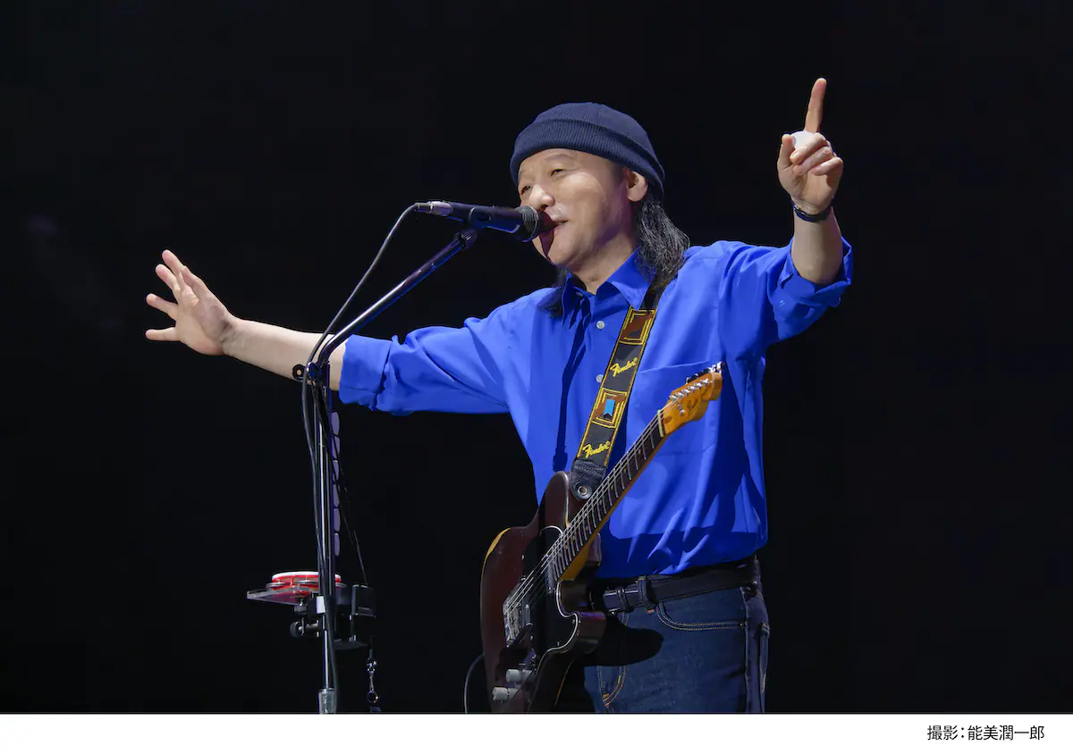 お祭りムードが最高潮に達したところで、両腕で杖をつき、上裸&Tシャツをショートパンツのように履いた甲本ヒロトが登場! 情報量が多すぎて理解が追いついていかないが、どうやら骨折しているらしい(「バイクで来た奴ら、気をつけて帰れよ!」のMCから推測)。しかしヒロトは不自由そうな身体をものともせず、エネルギッシュに「Please Mr. Postman」を熱唱。「なんで世の中がどんどん壊れていくか知ってますか?ーー新しくなるためです!」という名言も吐いて観客一同を酔わせてくれたのだった。最後は出演者全員で「ドレミの歌」を大合唱。明るくハッピーなバイブスが広がり、今年も最高の3日間になると確信させる絶好のスタートとなった。