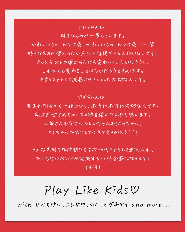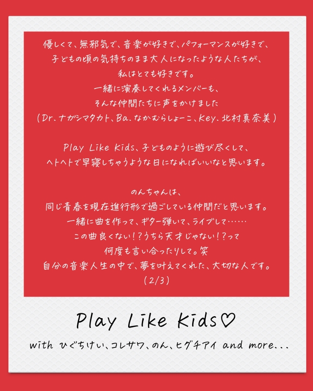 『Play Like Kids♡ with ひぐちけい、コレサワ、のん、ヒグチアイ』ステートメント