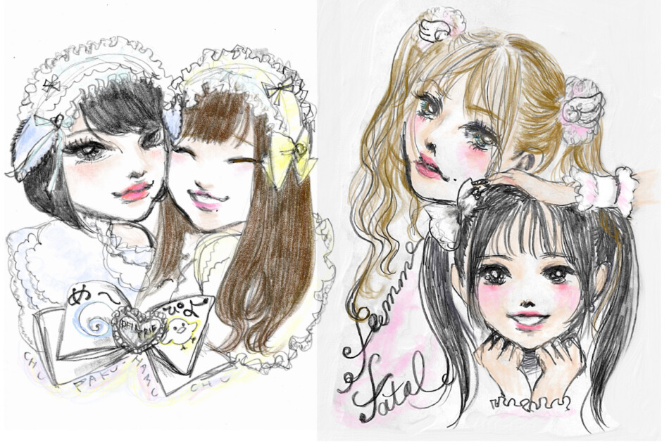 黒宮れいさん(左-左)と金子理江さん(左-右)のユニット・REIRIEの事務所の後輩新人……に扮した、れい&りえのサブユニット。REIRIEの強強ムードと真逆で、歌もダンスも衣装も“カワイイ”に全フリのキャラクター。オーディションブームとキラキラかわいいアイドル全盛の世間に中指立てた企画に思えて痛快だった。大げさなウィッグ、「ピヨ」しか喋れない設定、過剰なレースとフリルとリボン、どんなにつくりごと(フェイク)で塗り固められていても、2人の絆だけは、隠しきれない本物。