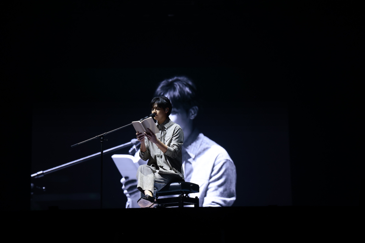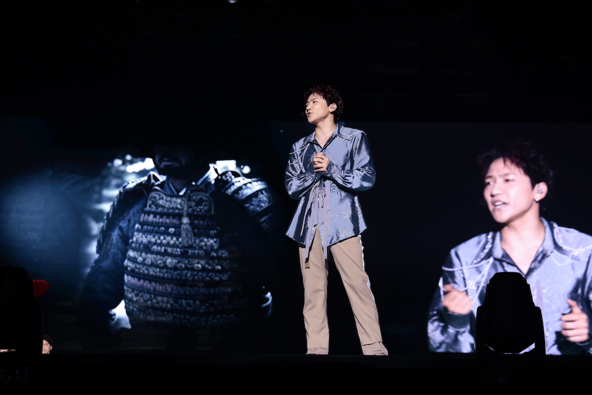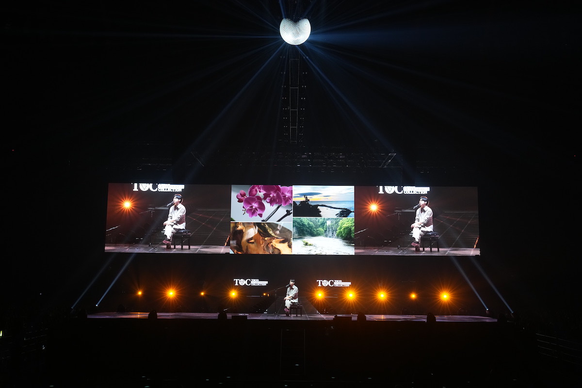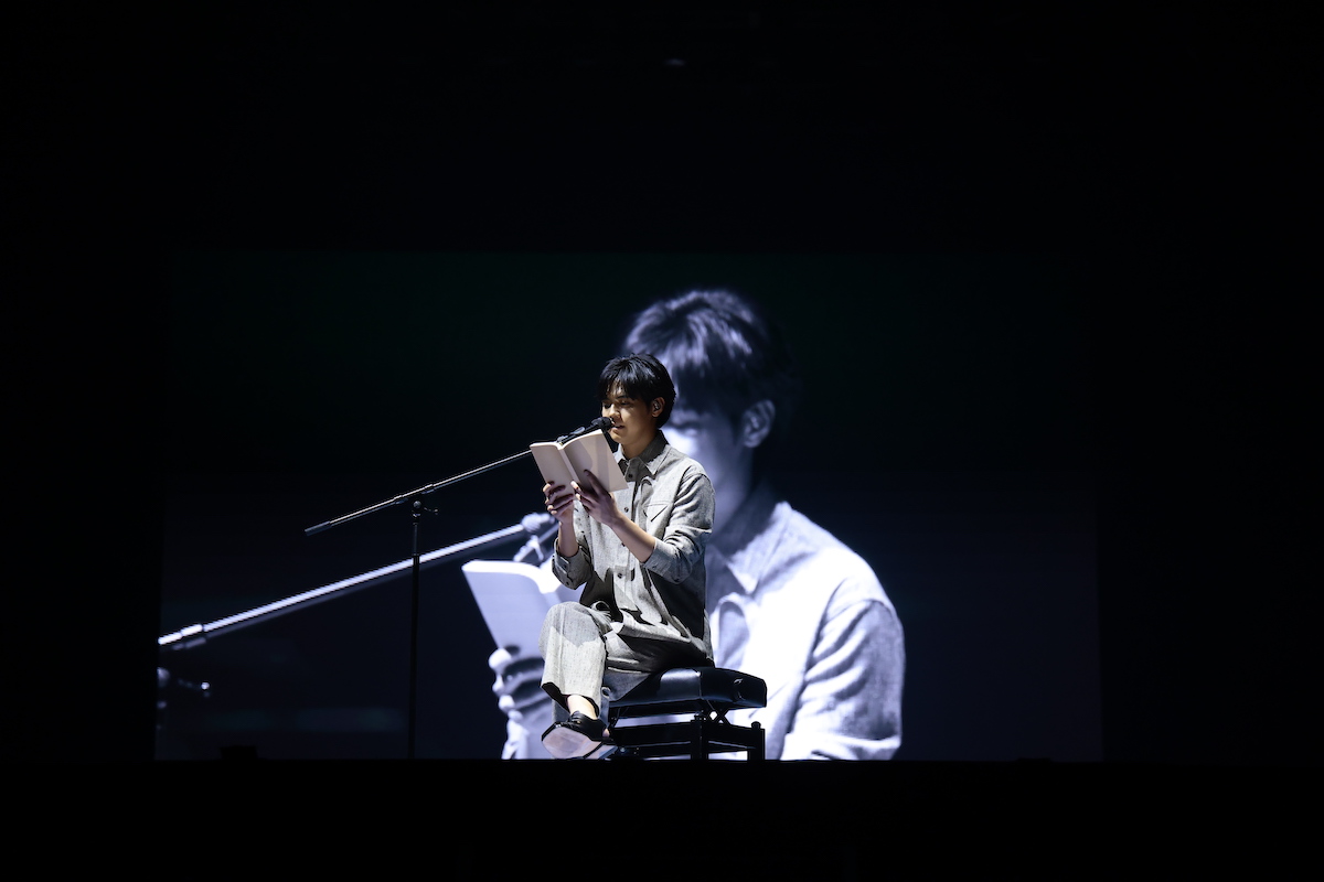 MVとリンクした大自然の映像を背にして、片寄がそっと歌い始めた1曲目は、1stソロアルバム『Bouquet』に向けて自ら書き下ろしたミディアムナンバー「朝日のように、夢を見て」。シンガーソングライターの土岐麻子が手掛けた「Smoky Town Rain」、シンガーソングライターのTani Yuukiが手掛けた「運命」へと続く。「Smorky Town Rain」の曲中には、ランウェイを歩きながら歌う片寄の頭上をフライングハートが舞った。「ソロでは、多くのアーティストと一緒に作品を制作していきたい」と常々語っている彼だが、それは楽曲に留まらず、このフライングハートも、「感覚の蘇生」をテーマに香りと音を芸術表現に用いるアーティスト・和泉侃がプロデュースした“香り”をプレゼントするためのロマンティックな仕掛けだという。「運命」の歌唱時には、佐藤充がアルバム『Bouquet』から着想を得て描いた絵画もスクリーンに映し出され、さまざまな角度から感性を刺激する新感覚のライブ体験を届けた。