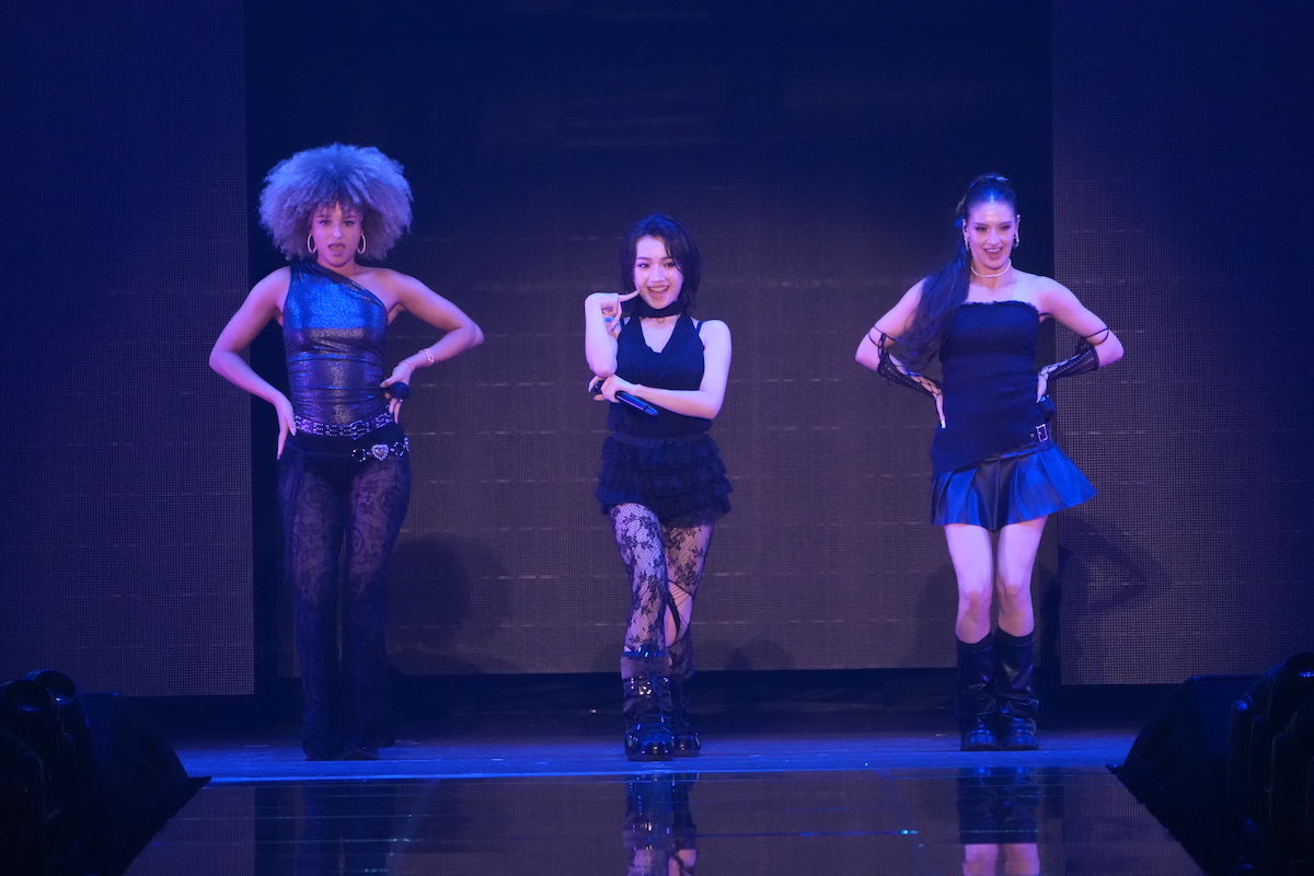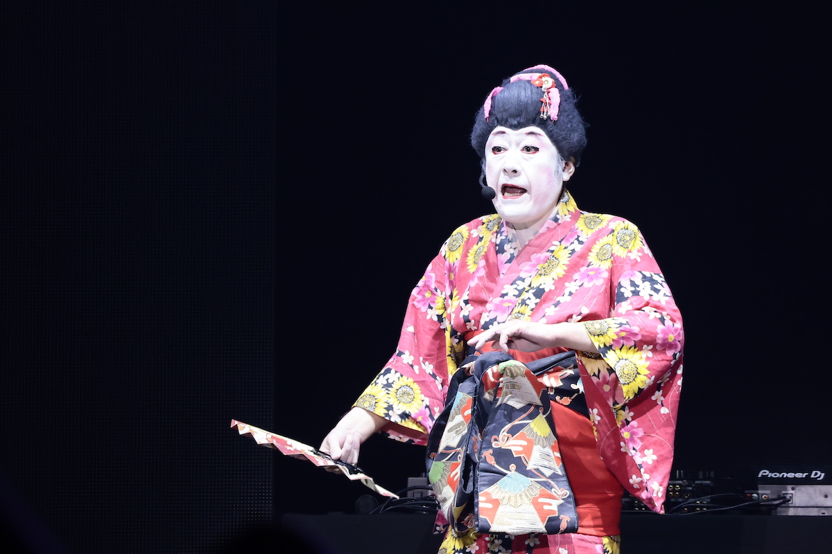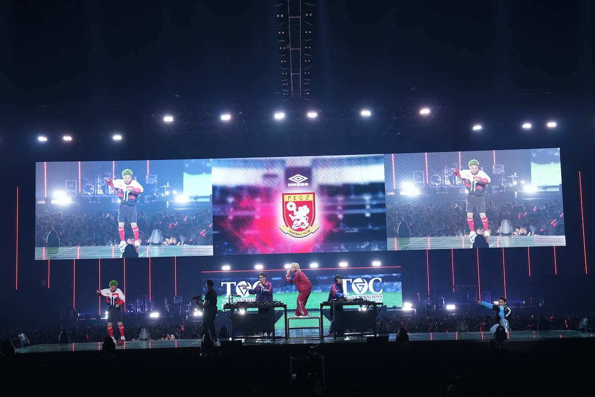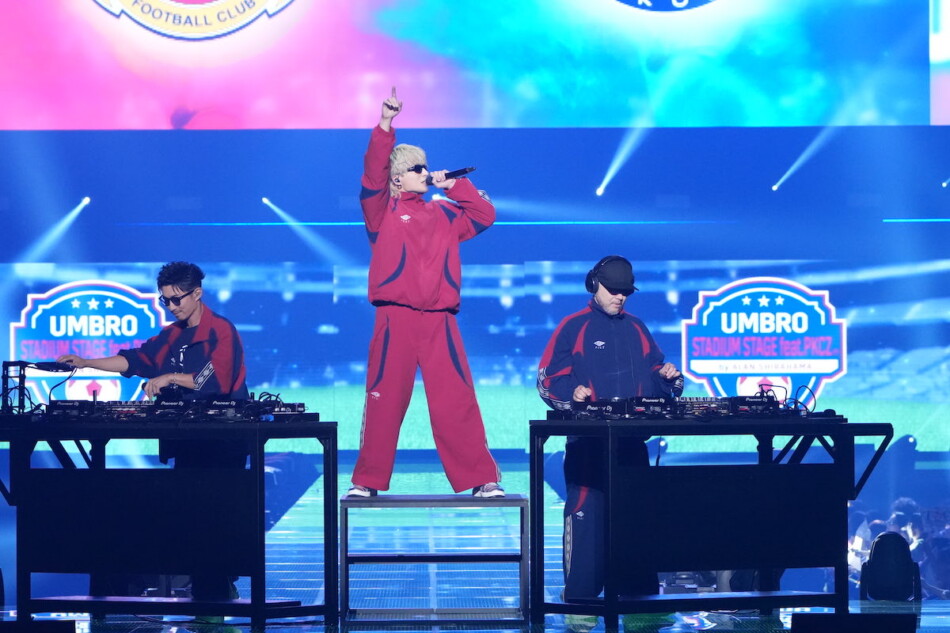 3時間に渡って駆け抜けたソロプロデュースステージの最後は、『UMBRO STADIUM STAGE feat.PKCZ®』。このブロックでは、白濱がファンだというフットボールアパレルブランドUMBROと、白濱がフロントマンを務めるクリエイティブユニット・PKCZ®のコラボレーションが実現した。EXILE MAKIDAIが「みんなで1つになっていきましょう!」と呼びかけると、3人はライブアンセム「PLAY THAT'24(ALAN ver.)」で、イベント会場を彼らのホームであるクラブに塗り替えていく。と同時に、ランウェイはサッカースタジアムをイメージしたライティングとなっており、UNBRO HOUSEのアンバサダーを務めている女優・山本舞香がモデルとしてサプライズ登場。フリースタイルフットボーラー(AKI、Ibuki、うづら、Ko-suke、SYUNYA、Daikichi、D.I.L、Yu-to、Yu-ri、Leon)の見事な足捌きも通常のライブでは見られない光景で、さまざまなコンセプトのグループが所属するLDHの中でも、ジャンルの垣根を超えるのが得意なPKCZ®ならではの化学反応が起こっていた。