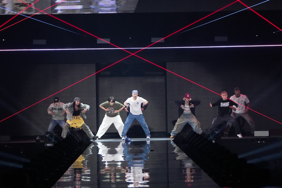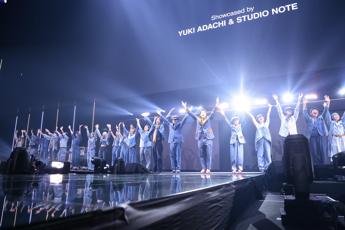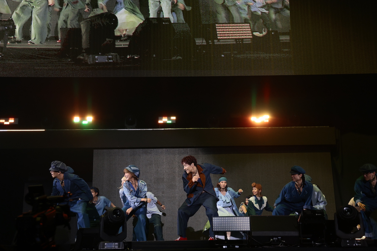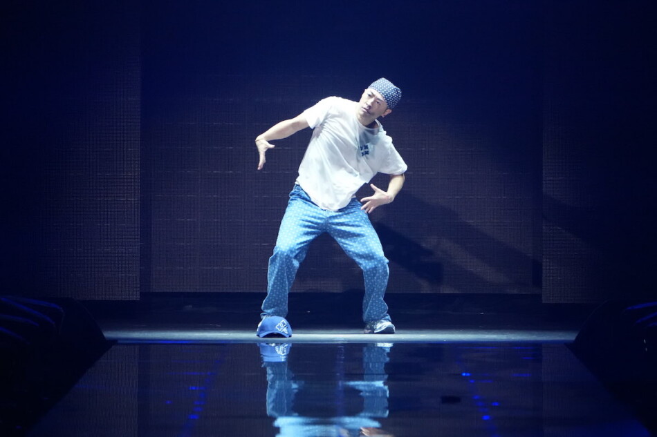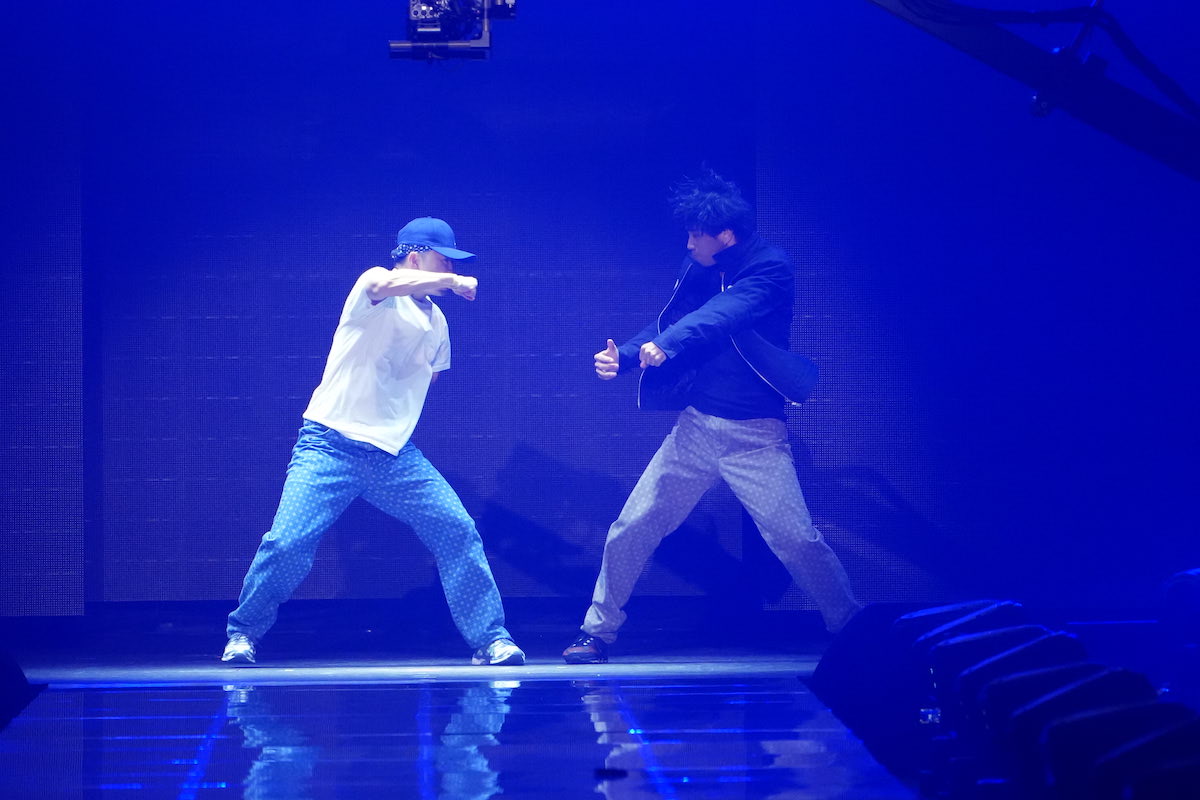 濃厚すぎる第1部を終えて、各メンバーによるプロデュースステージは折り返し地点を迎えた。第2部の先陣を切ったのは、フットワークに定評のあるパフォーマー・小森による『TAP INTO STORY STAGE』。安達雄基・gash!(Beat Buddy Boi)・STUDIO NOTEダンサーと共に総勢30名でストーリーを描き出す、臨場感たっぷりのタップダンスショーケースである。小森曰く、自身のキッズダンサー時代を振り返り、“少年の夢”をテーマに制作したそうだが、特に印象的だったのは、GENERATIONSの「涙」(ピアノインスト)に合わせて女性ダンサーと舞ったペアダンス。笑顔のイメージが強い彼だけに、悲哀を滲ませた表情が新鮮に映った。1度目のソロステージでは言葉で観客の心を掴んでいた小森が、肉体のみで表現するというギャップも、長時間イベントだからこそ生み出されたものだろう。