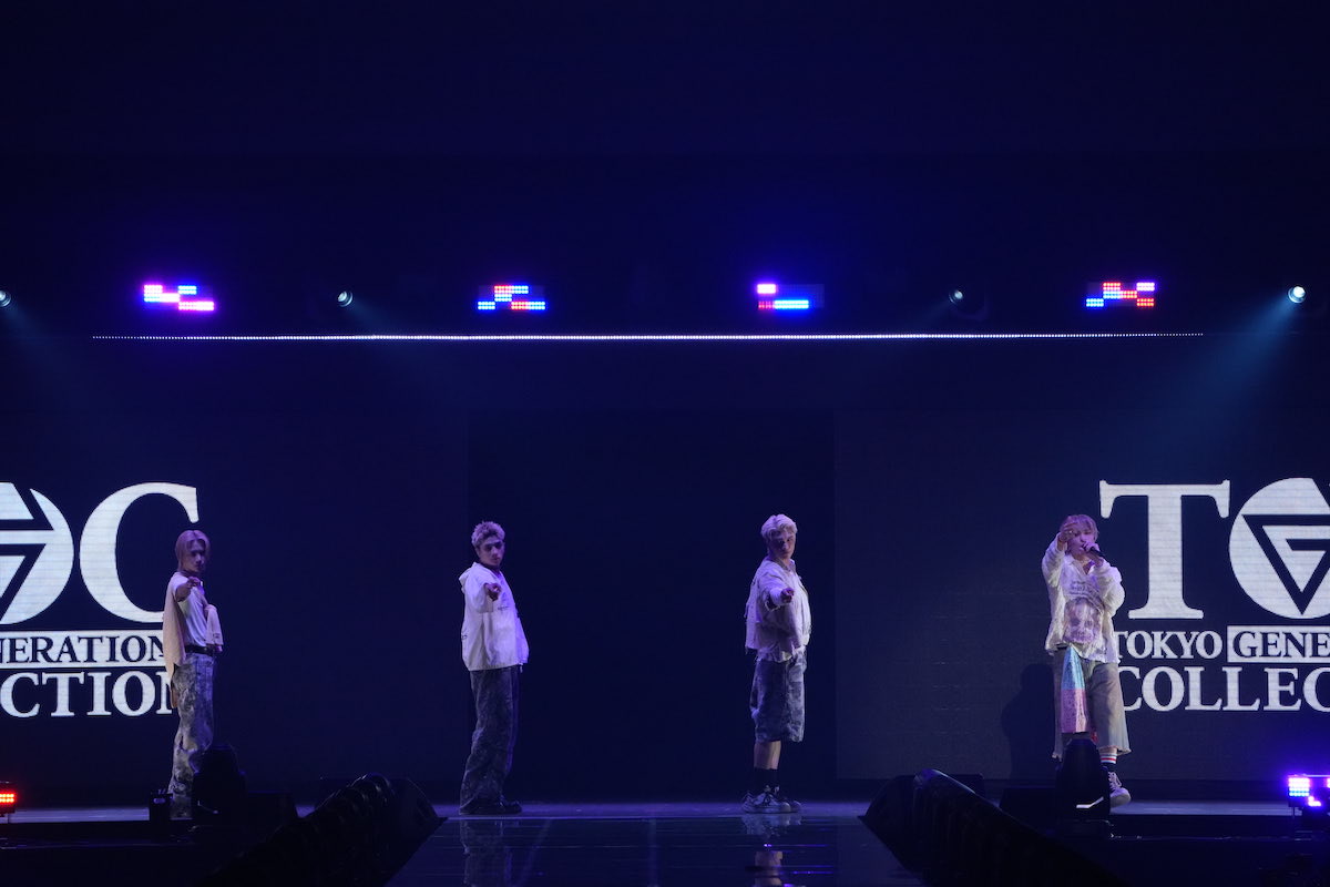 この2人のやりとりからもわかるように、メンバーの多くが10代の頃に結成されたGENERATIONSも、今では後輩育成に力を入れるなど、音楽シーンをリードする存在へと進化を遂げている。その姿勢を示したのが、後半に用意された『ARTIST LIVE』。今回のGENEコレでは、7月に誕生したばかりのLDH発のD.LEAGUEチーム LDH SCREAM、LDH初となるグローバルガールズグループ SWEET REVENGE、卓越した歌唱力とラップを武器に活動する新世代グループ WOLF HOWL HARMONYという3組の後輩グループにステージを預けた。また、幼い頃からストリートダンサーとして活動していた佐野のプロデュースステージ『Born in the street』には、新世代のトップダンサー9名(Sasya、KAZANE、KEIN、RA1ON、Killa Twiggz、FLAME、YUYA、龍、KANU)が集結。各ジャンルのダンサーによるフリースタイルダンスが観客の興奮を煽り、ファッションショーとはひと味違う盛り上がりを見せる。だからこそ、直後に控えていた、片寄のプロデュースステージ『The Vibe from Bouquet』との緩急が際立った。