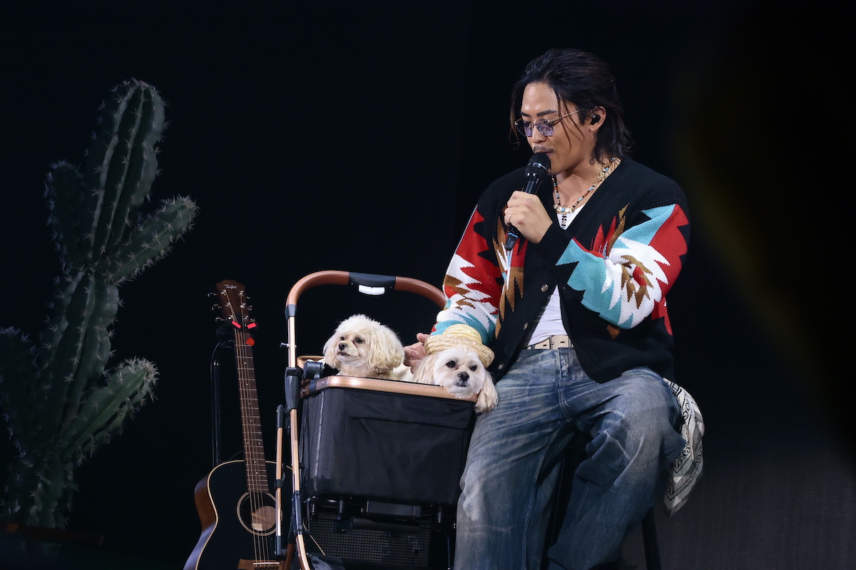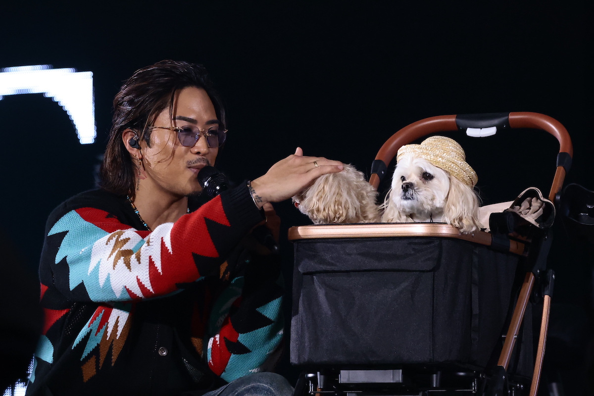 数原龍友のライフスタイルをテーマに展開するブランド『NO PAIN NO GAIN』と、ファッション誌『ViVi』(講談社)がコラボレーションした『NO PAIN NO GAIN STAGE』では、ソロアーティストKAZの活動を支えるバンドチームがスタンバイし、まるでサーフィン好きな彼の家に遊びに来たような雰囲気に。心地よい波の音と、「Beautiful Sunset」「Go Your Way」「Hush hush」といったソロ曲がゆったり広がった。そんな夕暮れのランウェイを舞台に、数原ディレクションの最新コレクションを、シークレットゲストの藤田ニコルや現役ViVi モデル(アリアナさくら・有坂心花・雑賀サクラ・ブリッジマン遊七・村上愛花)、後輩グループ・WOLF HOWL HARMONYのメンバーが華やかに披露。スペシャルゲストとして愛犬の殿と若がステージに呼び込まれ、7月にリリースした最新ソロシングル『Buddy』収録の「T&W」を歌唱する場面もあった。歌いながら2匹を愛おしそうに見つめる瞳や、愛犬たちが乗ったペットカートを押してノリノリで退場していく数原の後ろ姿が微笑ましい。演奏直後のTALK STAGE(総合MC・数原・藤田ニコル)も、バラエティーでの共演が多い仲良しチームというだけあってトークが弾んでいた。