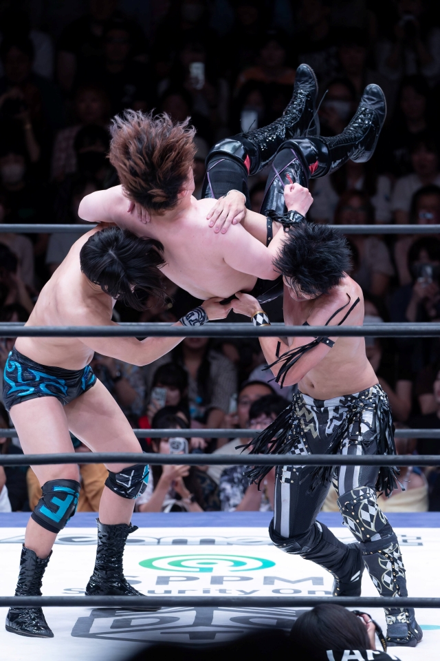 岡谷がジャーマンからクレイモアで逆襲すると、コーナーでの攻防から、武知が岡谷を雪崩式ブレーンバスターで投げ飛ばす。セコンドの佐々木がリングに入ると、武知の背中にイス攻撃。チャンスと見たDAMNATION T.Aは武知にトレイン攻撃をするが、イルシオンのスワントーンボムは自爆し、さらに岡谷の竹刀攻撃はイルシオンに誤爆することに。武知がイルシオンにチョークスラムもカット、上野がJul.2でアシストすると、最後は武知はスワンダイブ式フォアアームを見舞って、イルシオンから3カウントを奪った。