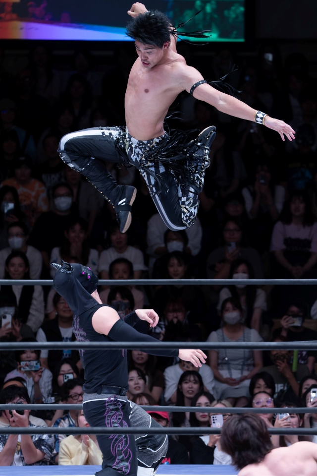 続けてバックステージでは、「1回、LDHに持って帰ります。HIROさんに触ってもらって」と笑み。チャンピオンとなり、これからは狙われる立場になるが、「いろんな選手と戦いたい」と前向きな様子。「今日は一番しんどい戦いだったけど、もっと自分を超えていきたいなって。(自力初勝利は?)もうがむしゃらでした。フィニッシュを獲れて、ベルトも獲れて、メモリアルかつ初めてで。忘れられない思いになったって」と感慨深げに語った。