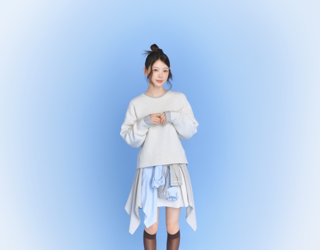 あわせて、WEB CMに連動したILLITのグループ/ソロのグラフィックも同時公開。同グラフィックでは、スフレヤーンニットだけでなく、メリノウールやカシミヤニットを着用している。