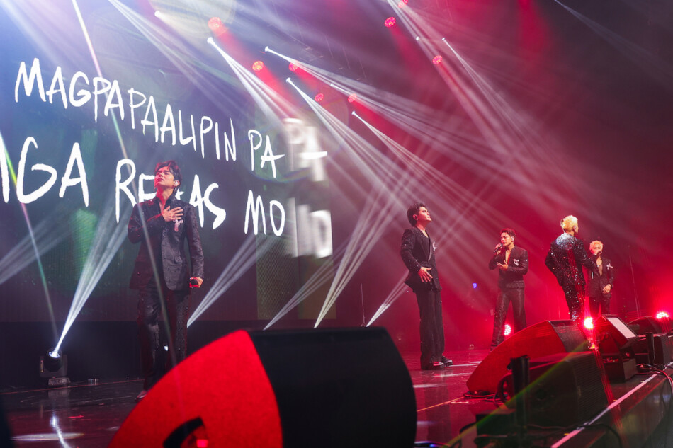 映像を挟んで、ブラックの衣装に着替えた5人は椅子に座り「Nyebe」を歌唱。緩急あるセットリストが観る者を飽きさせない。また、その後も「Time」とバラードが続き、静かながらも熱のこもったボーカルが、あらためて5人の歌唱力の高さを感じさせた。本当の自分を追い求めるようなメッセージに胸が打たれる「ILAW」、ケンが手掛けたロックナンバー「Quit」を経て、「GENTO」とともにYouTubeチャンネル『THE FIRST TAKE』出演時にも歌唱した「MAPA」へ。どこか懐かしいメロディが親しみやすい、家族への感謝が詰まったバラードだ。〈La-ta-ra-ta-ra〉のシンガロングも発生し、会場はあたたかな雰囲気に包まれていた。