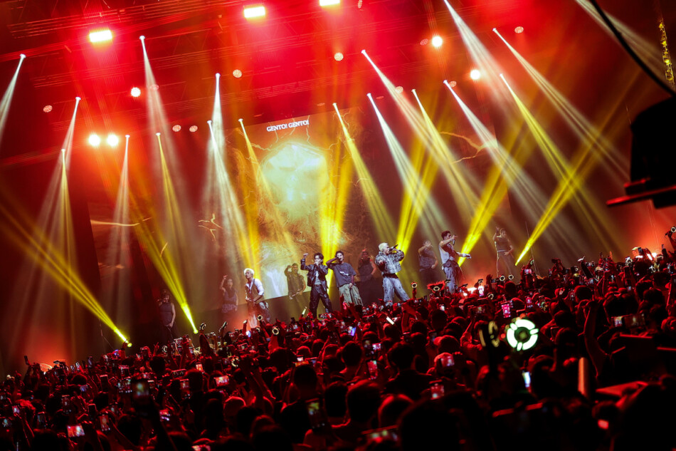 「Mana」でダンサーとともに躍動感のあるステージを届けた後、SNSでダンスチャレンジが大流行した「GENTO」へ。全身のエネルギーをぶつけるかのような力強い歌唱、迫力のあるダンスに圧倒される。メンバーが「Everybody, say!」と呼びかけると〈Gento〉のフレーズをA'TIN(ファンの呼称)が高らかに叫び、序盤にして会場は大盛り上がりとなった。