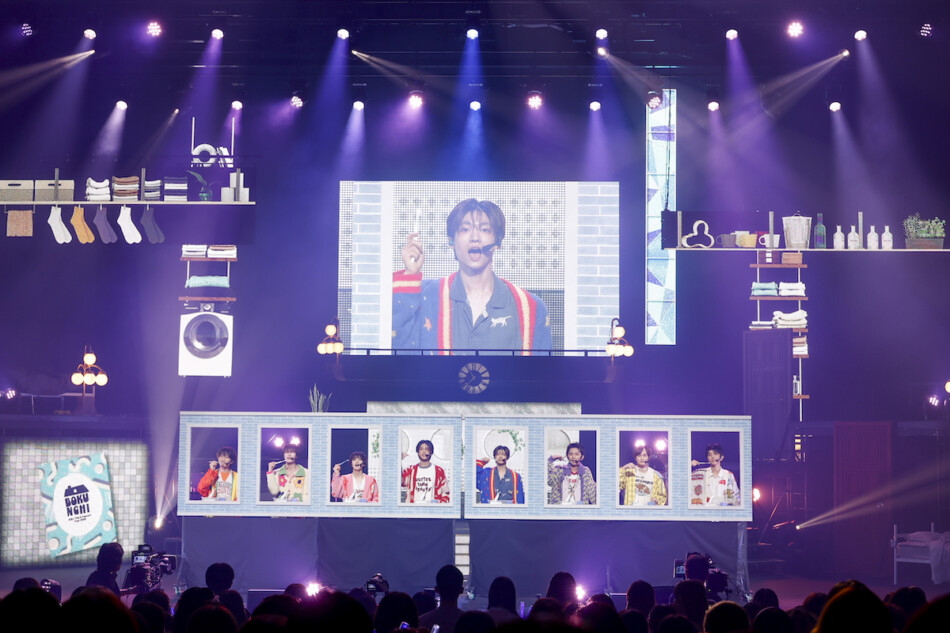 ライブ後半はメンバーカラーの蝶ネクタイがアクセントになっているスーツに着替え、クラシカルなボールルームを表現したようなステージにメンバーが登場。赤絨毯の大階段をバックに「It's party time!」を華やかに届け、「COUNT DOWN」では大人っぽい表情とセクシーなパフォーマンスで魅了。エキゾチックで情熱的なダンスナンバー「ALPHA」の世界観から「インストール」への極端な流れも楽しく、楽曲そのものの振り幅だけでなく、彼らの表現力もしっかりと幅を広げていることがわかるような流れになっていた。「CARNIVAL」ではメンバーがステージを降り、それぞれの場所でCOOLerとコミュニケーションを取りながら歌を届ける。本編ラストの「BOOM BOOM BOOM」でステージは再びリビングの仕様へと戻り、それぞれの扉からメンバーは部屋へと帰っていった。