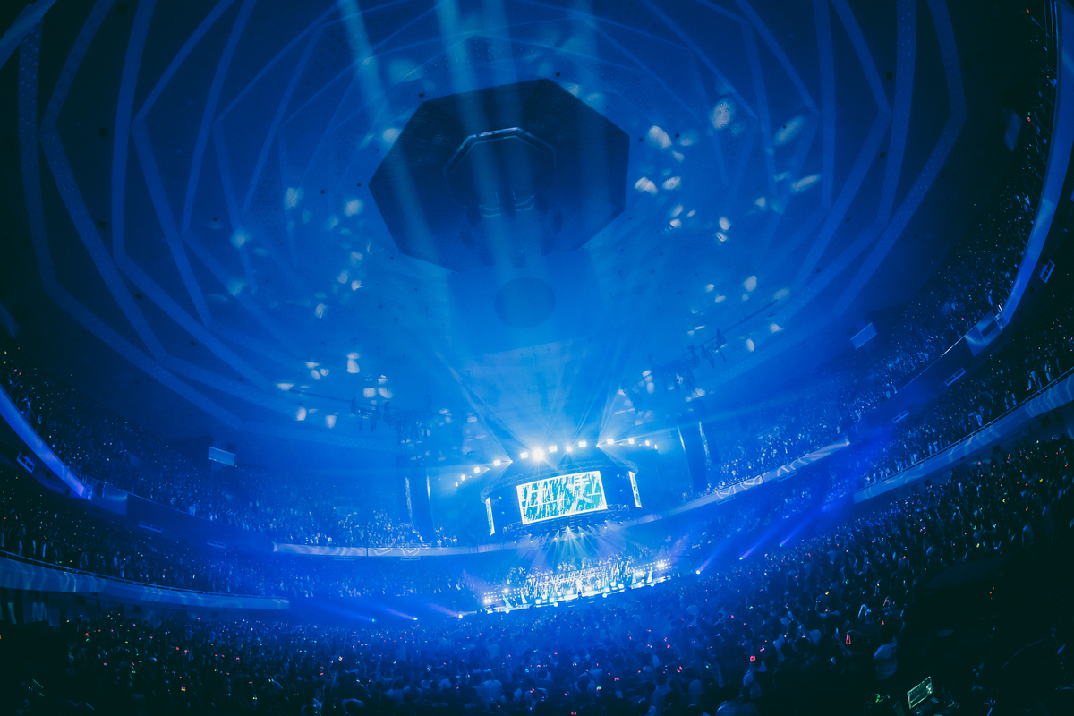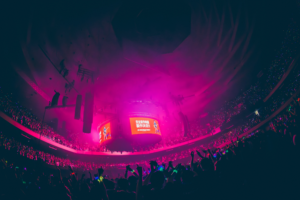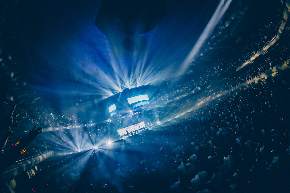 アニメのオープニング映像と同じ、普段は客席を潰すことが多いステージ後方の北側スタンド席にも観客を目一杯入れた結果、360度オーディエンスに囲まれる形となった今回の公演。約1万2000人動員というその数字にも驚かされるが、あんなに人で埋め尽くされた武道館の光景自体、筆舌に尽くし難いものがあった。