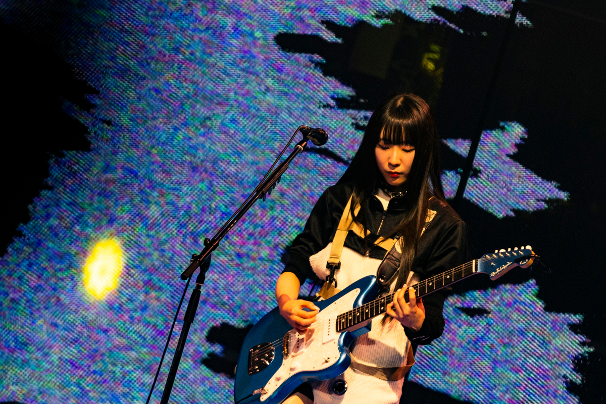 事前にアナウンスされたように、残念ながら昨年から休養中の凪都(Key/海老塚智役)と美怜(Dr/安和すばる役)がこの記念すべき公演に参加することは叶わなかったが、サポートキーボーディスト&ドラマーを迎えてステージに立った理名(Vo/井芹仁菜役)、夕莉(Gt/河原木桃香役)、朱李(Ba/ルパ役)は、ステージ頭上に設置されたスクリーンでのカウントダウンを経て、「雑踏、僕らの街」から勢いよくライブをスタート。テレビアニメのオープニング映像をフィーチャーしたその演出による、アニメの世界がそのまま目の前で展開されるような錯覚に陥る瞬間もあったが、幾多のライブを経て逞しく成長した理名のパワフルなボーカル、エッジの効いたサウンドと巧みなプレイで魅了する夕莉のギター、バンドのボトムを支えながらも随所で前に出て独自の存在感を発揮する朱李のベース……それぞれが強く主張することで、リアルバンドとしての孤高感を見事に示してみせた。