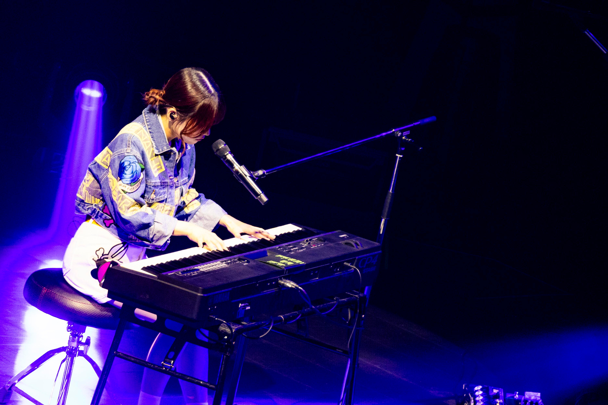 観客のクラップとともに一体感を作り上げるメロウなアップチューン「最期の禱り」を終えると、ステージ中央に設置されたキーボードの前に理名が座り、「誰にもなれない私だから」を弾き語りで披露するという驚きの演出も用意。これまで数曲でギターを弾く機会もあった理名だが、ステージに彼女ひとりだけが立ち、こうしてピアノ弾き語りで楽曲披露するとは誰が想像しただろうか。もともと叙情的な空気感を持つ「誰にもなれない私だから」だが、いつもより抑揚を抑えて歌うボーカルと繊細なピアノによって、より切なさが際立つ結果となった。