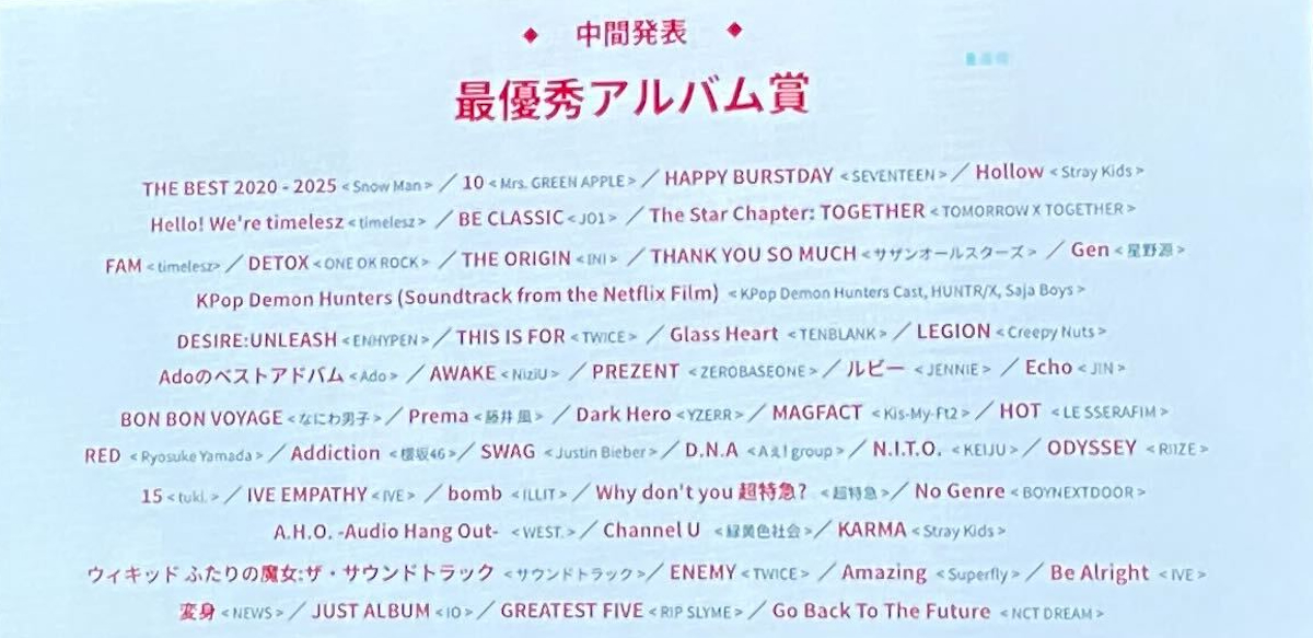 ※新設となる「最優秀ロングヒット賞(楽曲/アルバム)」は、2024年12月31日(火)までにリリースされた作品を対象とする。