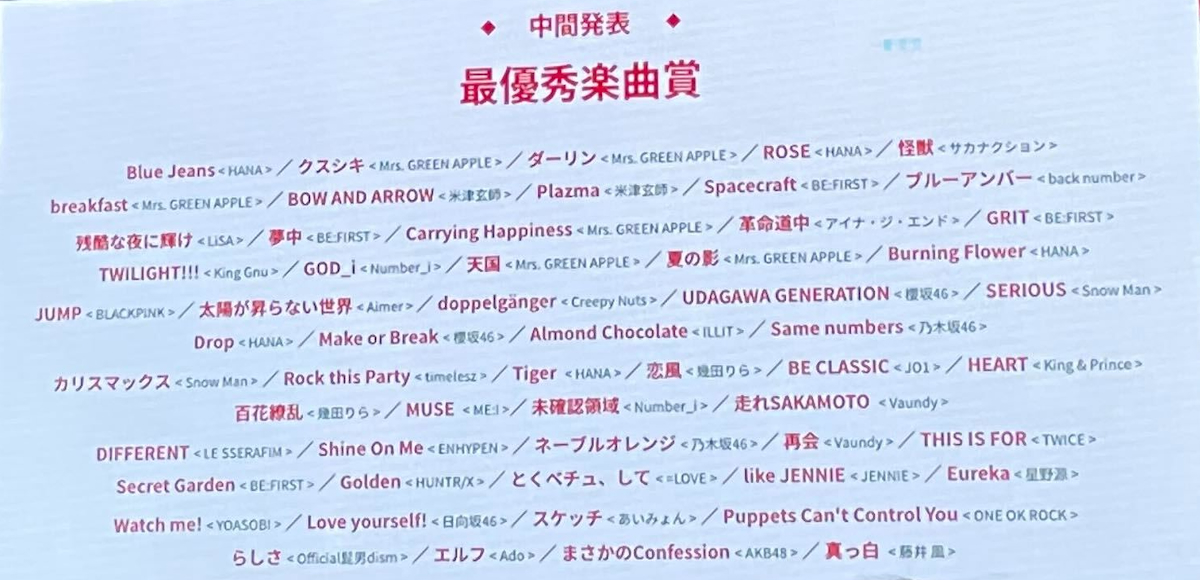 さらに、主要6部門、楽曲カテゴリーの9部門、海外楽曲カテゴリーの12部門、アルバムカテゴリーの3部門、アーティストカテゴリーの11部門など、66部門の詳細が決定。楽曲カテゴリーでは、日本の音楽シーンの多様性に合わせて、最優秀ダンス&ボーカル(グループ/ソロ)賞、最優秀ボーイズアイドルカルチャー楽曲賞(グループ/ソロ)、最優秀ガールズアイドルカルチャー楽曲賞(グループ/ソロ)が新たに設けられた。また、昨今のロングヒット曲の増加やリバイバル楽曲への再注目の潮流を受け、バックカタログ部門を創設し、長きにわたり愛される楽曲を表彰する。