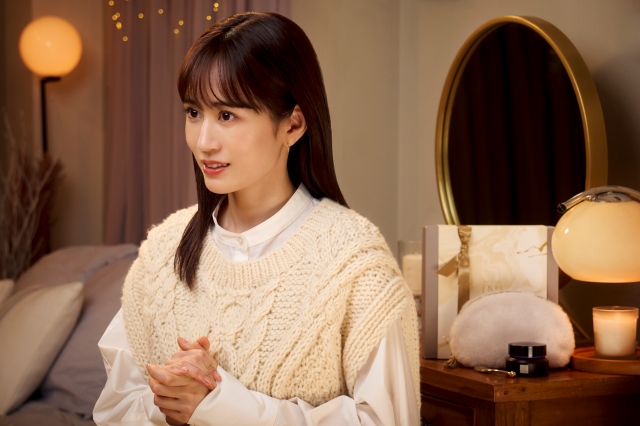 本CMは、雪景色の一本道をママチャリで走る前田の姿からスタート。息を弾ませながらも、どこか楽しげな表情を見せる前田の自転車かごには、ホリデーギフトのバッグが。部屋に入り、ギフトを開けて『N organic Vie ヒアルアップ リフトクリーム』を手に取り肌になじませると、その使用感にふっと和らぎ、うっとりとした表情を見せる映像となっている。