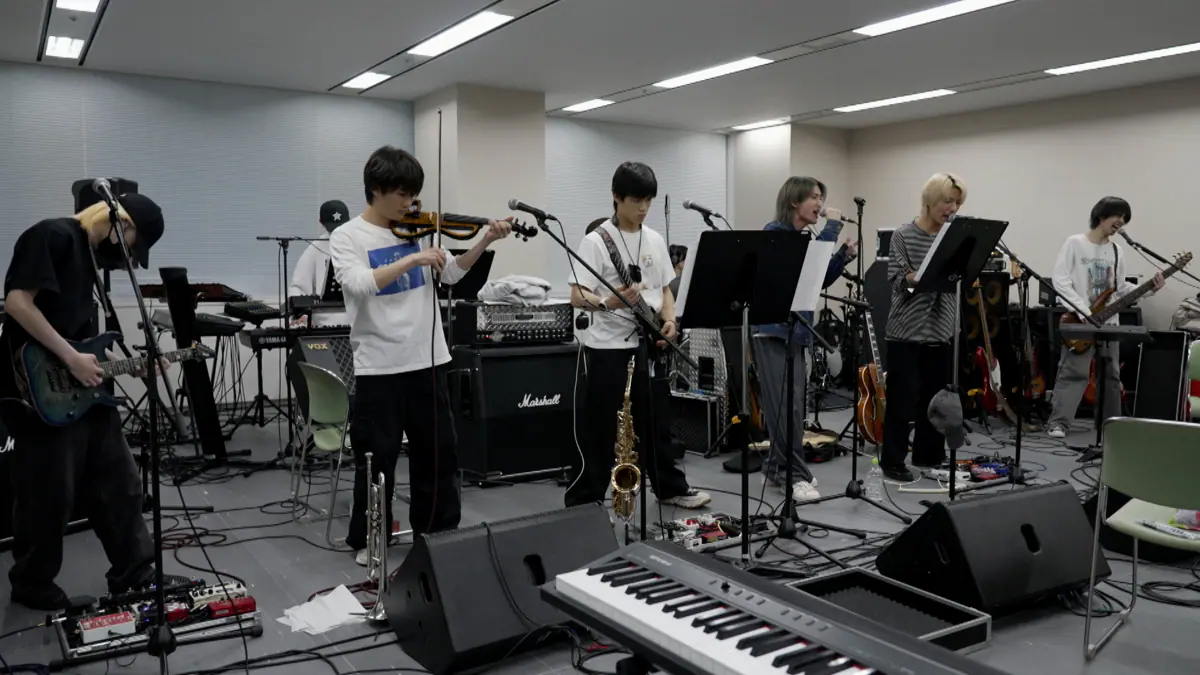 また、サックス&ギターの菅田琳寧は抜群の身体能力でバラエティでも活躍し、キーボードの本髙克樹は芸能活動と並行しながら、名門大学で博士号取得を目指す一面も。鈴木悠仁はこれまで独学で取り組んでいたギターに本格挑戦。バンド全体の安定感を担うドラムスは川﨑星輝が務め、クラシックに慣れ親しんできた稲葉通陽はバイオリン&トランペットで存在感を発揮。個性豊かな8人が初の単独ライブに挑む様子に密着している。
