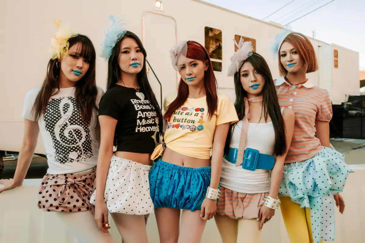 KAEDE、SAYAKA、MIYUU、RURI、RUIの5人から成る東京発の異次元ドリームグループ・f5ve。本稿では彼女たちのアメリカでの活動に焦点を当てる。今年5月にアメリカ公式デビューの舞台として用意されたのは、ロサンゼルス。サブカルチャーや次世代ナイトライフがテーマのコミュニティ・Subcultureがプロデュースした単独ライブはチケット完売。6月には世界最大級のLGBTQ+フェスの一つ『LadyLand Festival』(ニューヨーク)に出演し、ドラァグクイーンのダンスパフォーマンスを目の当たりにするなど、各地のコンセプチュアルなイベントを通して経験値を積み重ねてきた。それから半年が経った12月、日本代表として『ennichi ’25』のパフォーマーに抜擢された。海外渡航を取り巻く環境やコストの負担が増す中で、年に3度もアメリカでライブを行う日本拠点のアーティストは決して多くない。