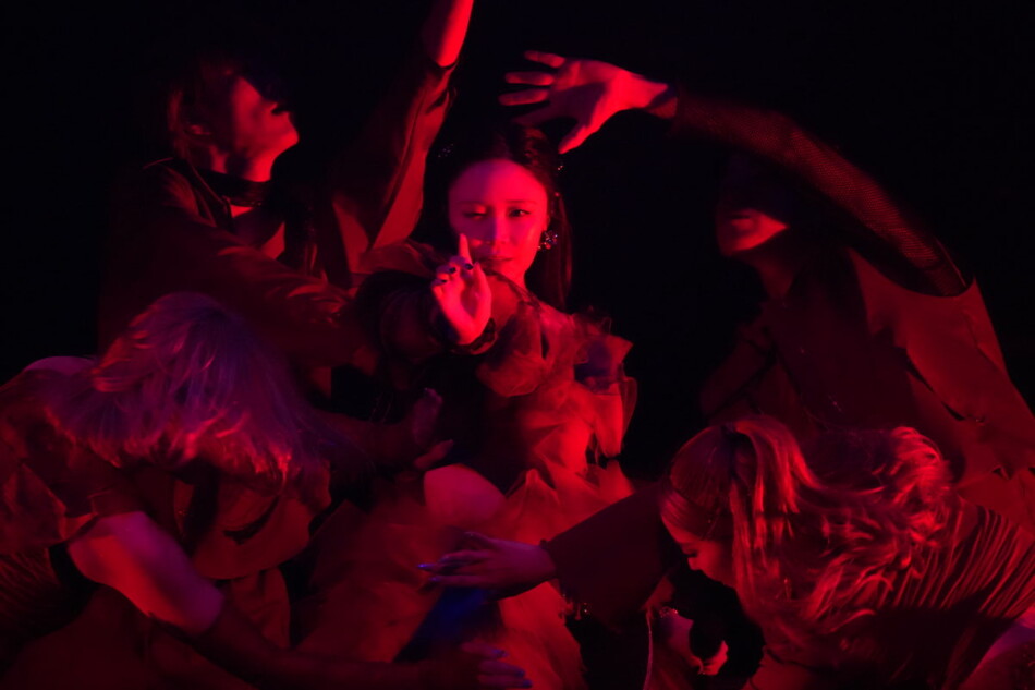 『freivor』の1曲目「TOP NOTE feat. SOOJIN」で幕を開けたライブ。キャンドルなどが飾られたテーブルに横たわりながら歌うパフォーマンスで観客を魅了すると、間髪入れずE-girlsの「PainPain」、さらにドラマ主題歌にも起用された「So Addictive」などダンスナンバーを次々と繰り出す。男性ダンサーの膝に王女のように座る振り付けがあるなど、ミステリアスさと力強さを纏ったボーカル&パフォーマンスで会場を釘付けにした。