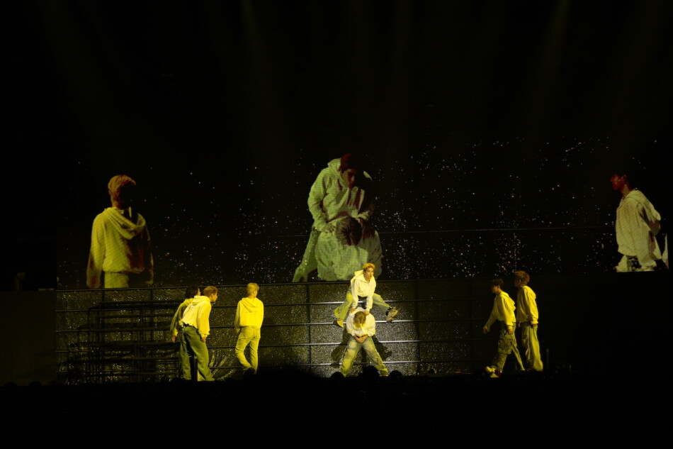 中盤の「All of You」「Animal」のブロックでは、その身体で魅せる構造が一気に際立ち、説得力をもって迫ってきた。照明に浮かび上がる鍛えられた体の陰影、重心を落とした滑らかなステップ、ゆっくりと観客を射抜くような視線といった要素は、“肉体そのものを表現として使うパフォーマンス”として前面に出てくる。しかしそれは決して過剰なアピールではなく、楽曲の温度や質感に合わせて緻密に設計された表現として成立している。身体がそのまま音の延長線になり、筋肉の動きすらリズムの一部として織り込まれているように感じられた。