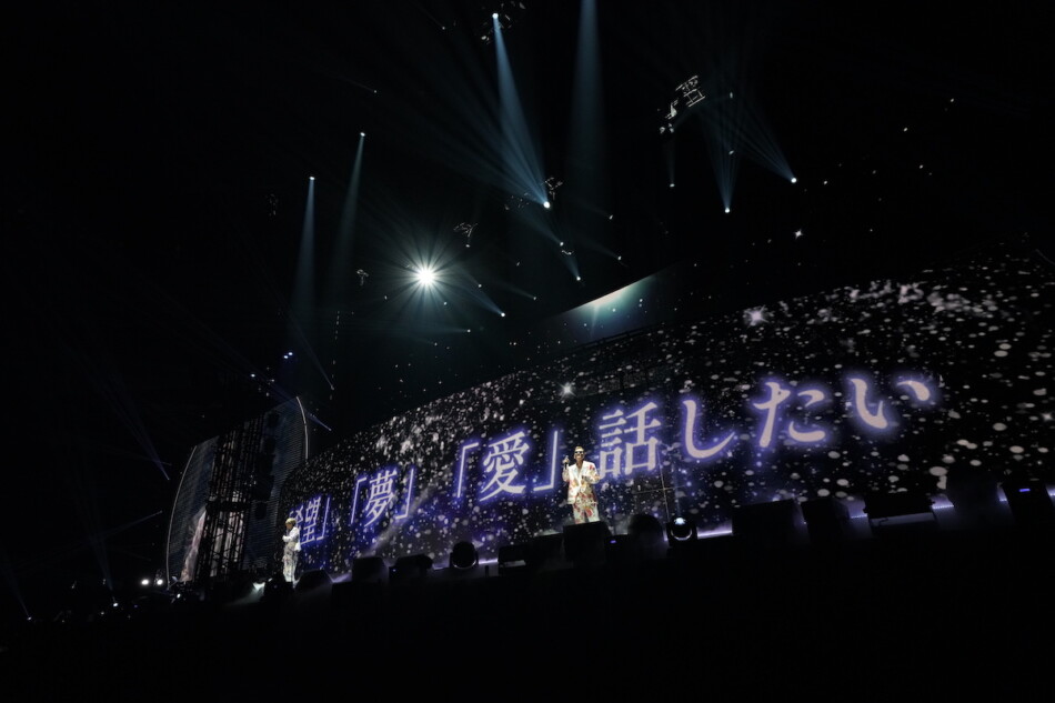 そんなダンスブロックを経て、デビュー24周年を迎えた9月27日にリリースした新曲「Get-go!」が披露されると、早くも本編終盤。ATSUSHI、TAKAHIRO、NESMITH、SHOKICHIの歌声を全身に浴びながら、パフォーマーもリズミカルに手を振る。そして「VICTORY」「Someday -House Mix」の掛け声やタオル回しで、さらに心を1つに。「BOW & ARROWS」では、メンバーが固まってポージングをとる傍ら、NESMITHと世界がおどける場面もありつつ、「WON'T BE LONG」「Ki・mi・ni・mu・chu」「銀河鉄道999」といったライブ定番曲で賑やかに駆け抜けた。