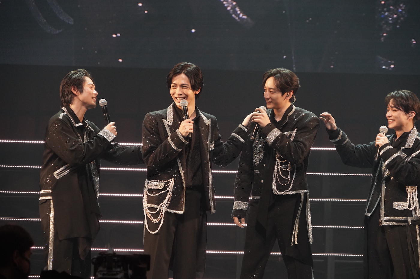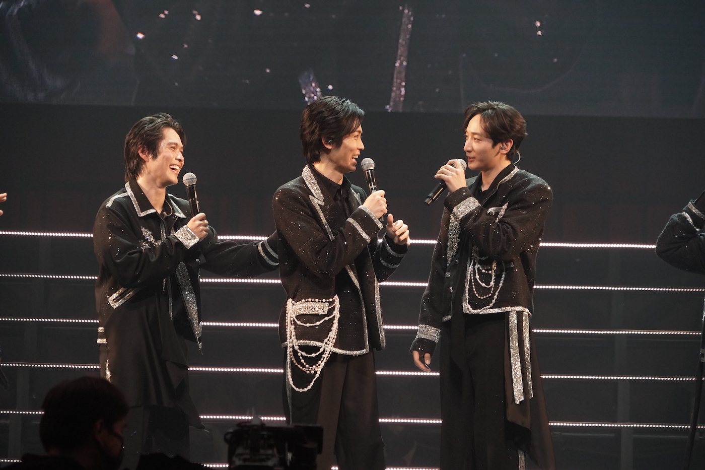「無礼講!!!」でにぎやかに本編ラストを締めくくると、アンコールで彼らは「Here Today」を心を込めて歌い上げた。「With You」で「応援してくれる皆さんと一緒にこれからも自身の道を歩んで行く」という決意を表したのち、ラストに贈られたのは「DEAR MY GIRL」。〈ありがとう 大好きだよ!/ココロから感謝してる1/これからもずっとその笑顔で/僕のそばにいて 君だけを見てる〉――20年分の感謝の気持ちと今後も変わらぬ愛を歌に乗せて届け、『ハンサムライブ』は幕を下ろしたのだった。