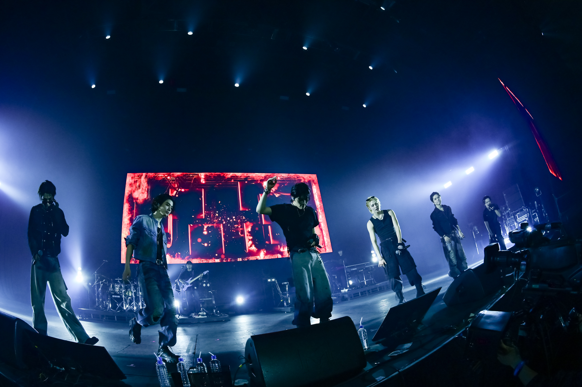JAEHYUNが「皆さんと一緒に歌えて、とても嬉しいですし、今日のステージが特別に感じます」と喜びを伝えると、RIWOOが「次のステージは少し雰囲気を変えてみようと思います。皆さん、スマホのライトをつけてください」と言葉を重ねた。LEEHANが「皆さんと一緒に歌いたい曲があります」と発して「So let's go see the stars」を届けると、フロアから掲げられたスマホが眩しく光った。曲のタイトル通り、燦然と輝く星のようで美しい光景を創出した。「皆さん、最高だった。……では、ここから本気で行きましょうか!」と言って「Hollywood Action」で熱狂という名のギアを上げていく。「But Sometimes (Japanese Ver.)」では火柱の映像をバックに〈フザケンナ〉の激しいフレーズがオーディエンスの心を掴んで、一人ひとりの心拍数を勢いよく上げていく。