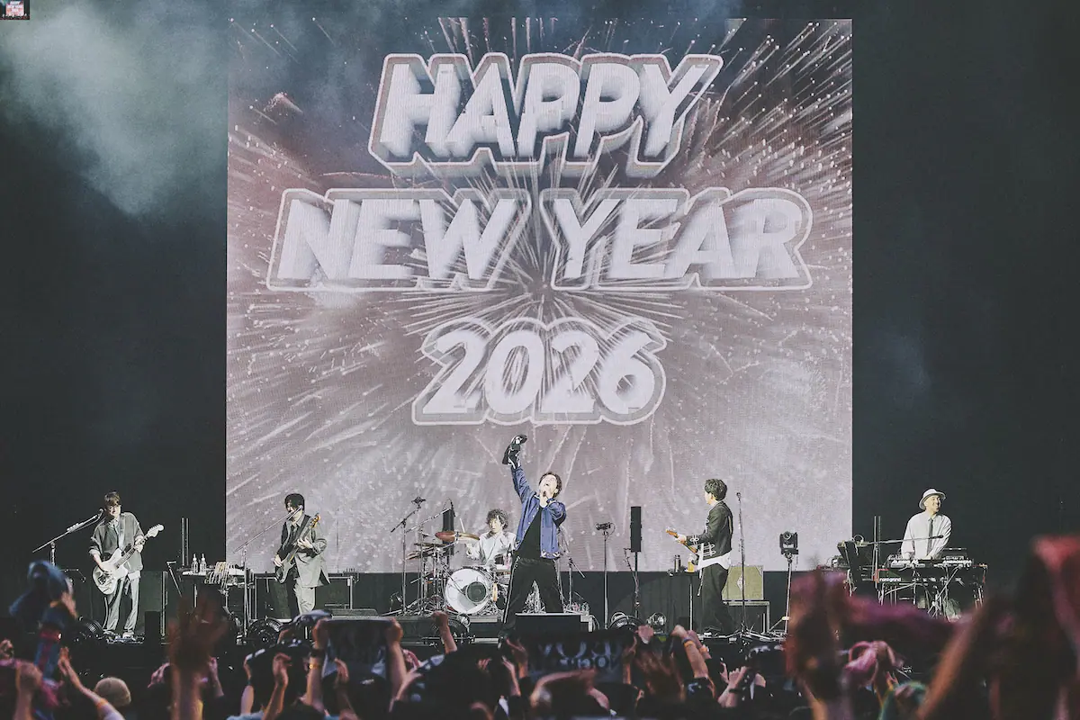2025年、TVドラマ『良いこと悪いこと』(日本テレビ系)の主題歌として「アゲハ蝶」が再びフィーチャーされた。これにちなんで、「良いこと悪いこと」を巡る小競り合いも挟みつつ、岡野が「20数年前の楽曲があらためていろんな方に認知されることはラッキーなこと。自分たちの活動にまた違う風が吹いてありがたい限り」と振り返る。そしてニヤリと客席を見ると「すごいクラップと歌声が聞けるんだろうな」とつぶやいて、「アゲハ蝶」へ。岡野の期待を超えるほどのクラップとシンガロングが会場を揺らし、ふたりはうれしそうに、普遍的な魅力を持った同曲を2026年に鳴らした。ラストは「ジレンマ」。この曲でステージ上も客席も、岡野いわく「すべてを凌駕するアホ」になり、熱さと温かさを持ち合わせた約7年ぶりのカウントダウン公演は幕を下ろした。