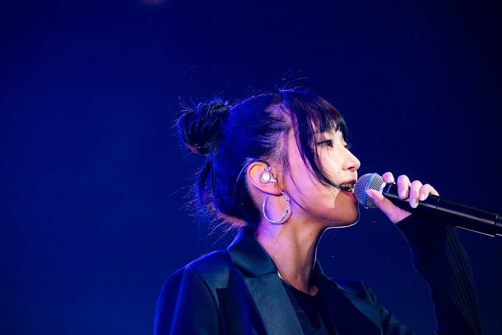 そして「出会いの輪が生んでくれた曲」として次の曲に入っていく。披露されたのは「present」。Ryo 'Lefty' Miyataによるプロジェクト cross-dominanceにmayuとmahoが参加して作られ、のちにExWHYZバージョンも制作された楽曲だ。4人の歌もバンドの演奏も優しく、会場の全員を包み込むようにして鳴り響く。続く「ドラマ」も素晴らしかった。バンドの音で何倍にも厚みを増したサウンドがホール中に広がり、その音を全身で受け止めながら4人が感情のこもった歌を届ける。とても繊細で音楽的でまさにドラマティックな、今のExWHYZだからこそ生まれ得たパフォーマンスだったと思う。