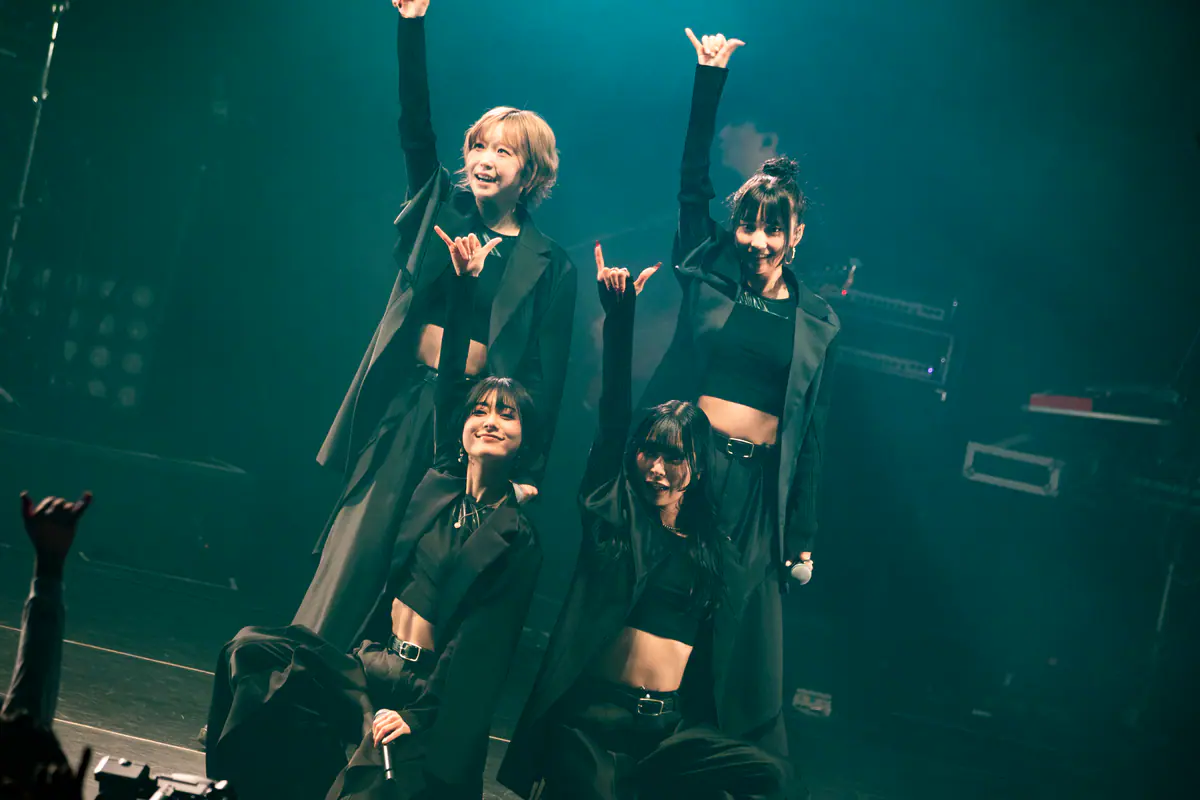 マスターのシンガロングが響き渡った「Our Song」を経て、mayuが作詞に参加した「リグレット」が披露される。「後悔してもいいから突き進め!」と力強いメッセージを伝えるこの曲を歌う4人はみんな笑顔だ。最後に「Obsession」へ。この日のmikinaの〈見逃さないで〉はいつもと全然違う、クールというよりもホットなものだった。そして最後にマスターを含めた全員で呼吸を合わせてジャンプするとライブ本編は終了。