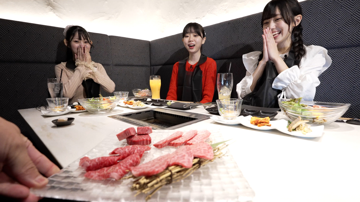 臼井碧依、白石るり、針ヶ谷心は、YAKINIKU 55 FIFTY-FIVE TOKYOで焼肉パーティー。食レポでは臼井が「野菜が目の前にいます」と独特なコメントを放ち、白石と針ヶ谷が思わず固まる流れもこの回ならではだ。さらに臼井は、以前から白石の存在を知っていたこと、初めて隣に座ったときに自分から声をかけたこと、そして今こうして一緒に活動できている嬉しさを素直に語っていた。同じ店には太田梨月、田中杏夏、宮崎心桜も訪れ、話題は合宿では聞けなかった普段の生活へ。田中がダンス部で文化祭のステージに立っている話が出たり、恒例のモノマネでは宮崎がまさかの“田上優海モノマネ”を披露して大ウケしたりと、完全にオフの表情がのぞく時間になっていた。