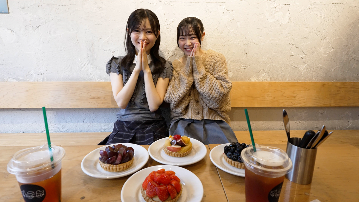 柿沼里音と安井泉妃は、タルトを食べにAM STRAM GRAMへ向かった。合宿では同じ部屋で過ごしていた2人だけに、会話のテンポは最初から軽い。近況の愚痴をこぼし合ったり、互いのタルトをひと口ずつ食べさせ合ったりと、すでに仲の良さが出来上がっている空気が伝わってくる。ロケ中も、それぞれの持ち味がはっきり出ていた。安井はスタプラ研究生らしく、カメラに向けたリアクションや動きがスムーズ。一方の柿沼は、表情がくるくる変わるうえに、食レポの言葉選びが上手くて、聞いている側まで楽しくなる。そこへ登場した指令書は「2人で変顔をすること」。無茶ぶりではあるのに、2人は顔を見合わせてすぐに笑って、ためらいなくやってみせる。合宿の緊張感とは違う、気を許した空気と仲の良さがそのまま映っていた。