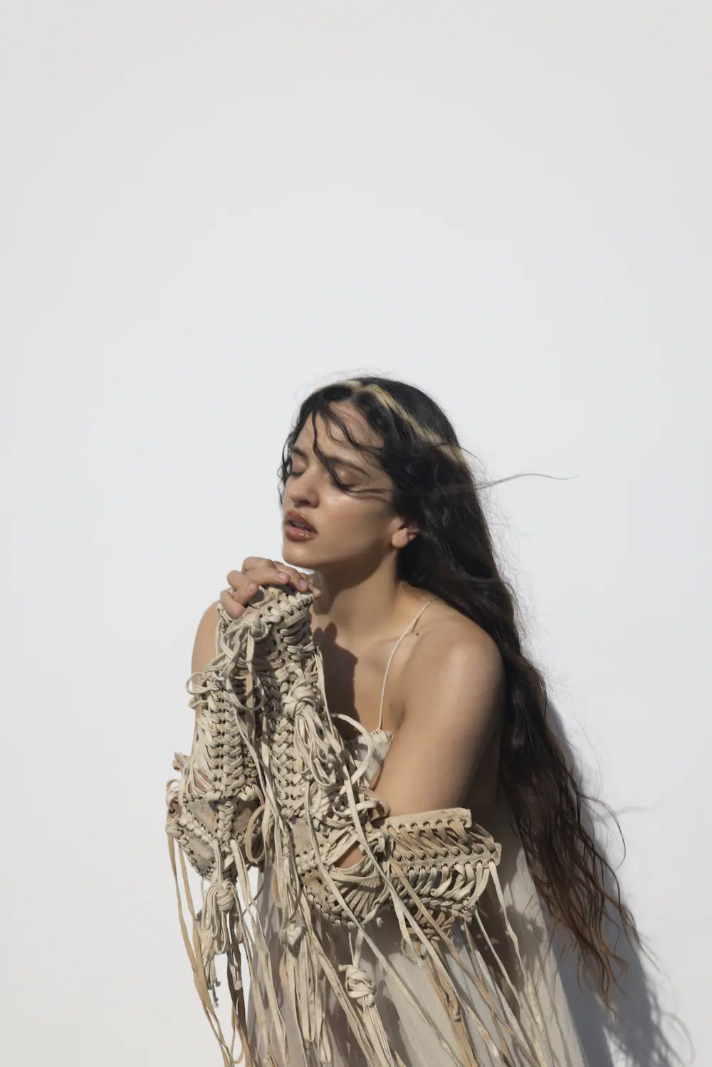 AIに歌わせることもできる時代に、自らの体内に音声言語をインプットし、自らの口・喉・舌を使って発するその声は、それゆえに強烈な実体性、身体性を伴っていると言えるだろう。“身体”というのは、考えてみれば過去のロザリアの作品でも常に探求されてきたテーマだ。世界的なブレイク作となった『EL MAL QUERER』(2018年)のアルバムジャケットではキリストを暗示する象徴にロザリア自身の姿が収まってヌードの体を神秘的に発光させており、ゴヤの宗教画のオマージュである収録曲のシングルのアートワークでもまた同様である。続く『MOTOMAMI』(2022年)のアートワークでは対照的に女性の強さや反抗的なエネルギーを表現したヘルメット姿ではあるがヌードであることは引き継がれており、いずれにしても自身の生身の体をモチーフにしていることには変わりない。