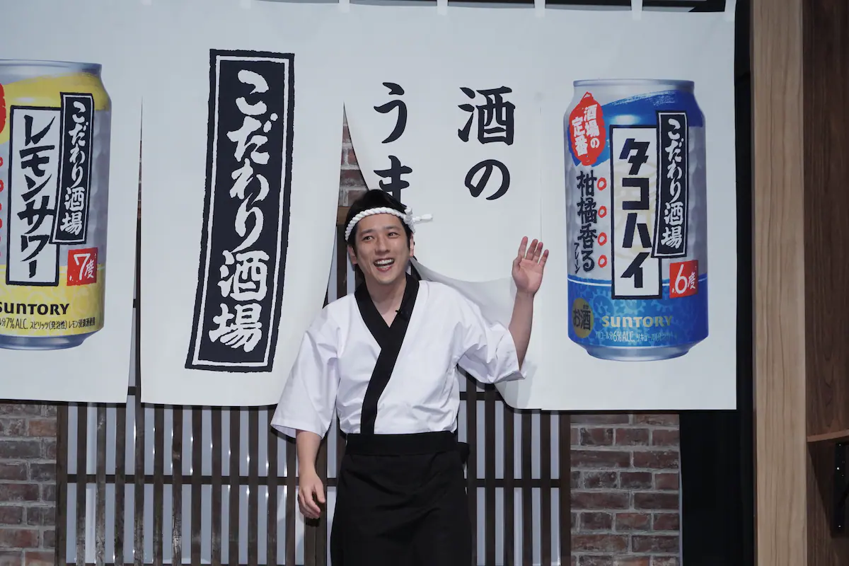 嵐 二宮和也がCMキャラクターを務めるサントリー「こだわり酒場」の新CM発表会に登壇した。
